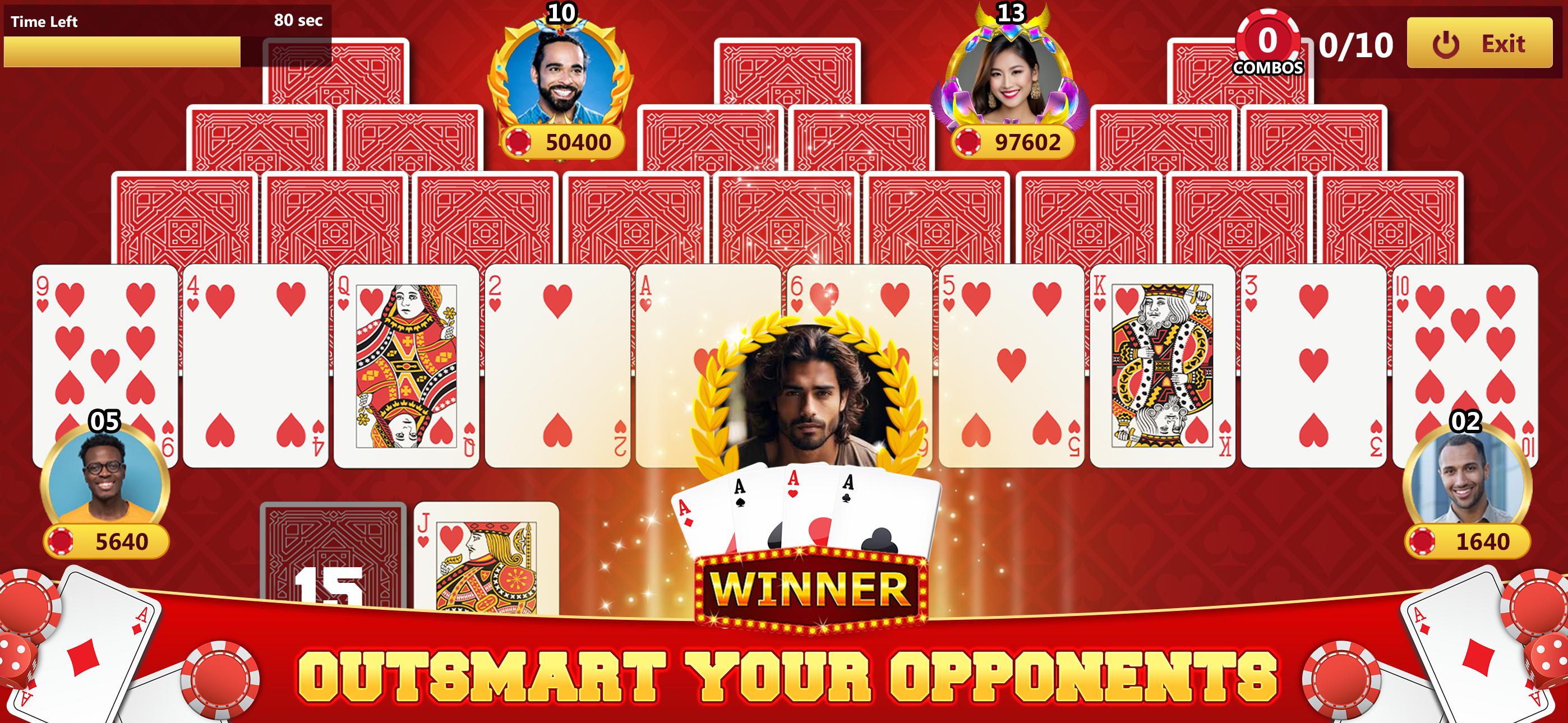 Try to place all cards at the top which is faced up at the bottom. Card value needs to be higher or lower than the card facing up. Bonus points will be given when making combo’s and for extra time! You can also play against each other! Multiplayer available now.