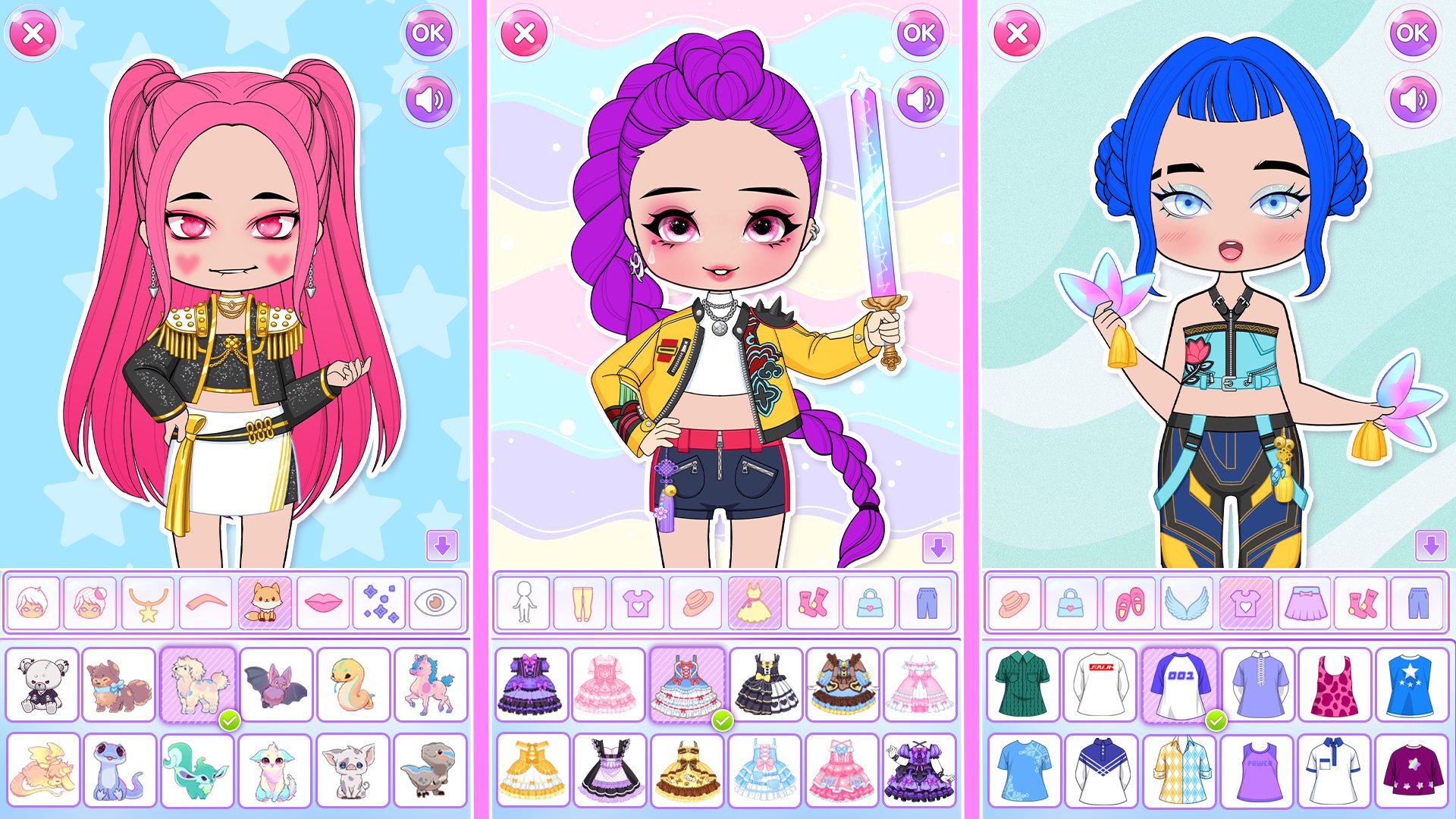 Cute and sweet chibi fashion game, avatar maker, avatar world games and kawaii doll dress up games for girls! Now you can make your character and become an incredible girly designer by dressing up girls. Name it Lily, Toca, Magic or Yoyo, or however, you want. You can use your chibi doll as a cute anime avatar for social networks, or create your fashionable life stories with your anime princesses. Try the Gacha wheel, surprise your friends, unleash your imagination, and upgrade your creative skills in the fashion DIY world game! Become a doll designer easily!