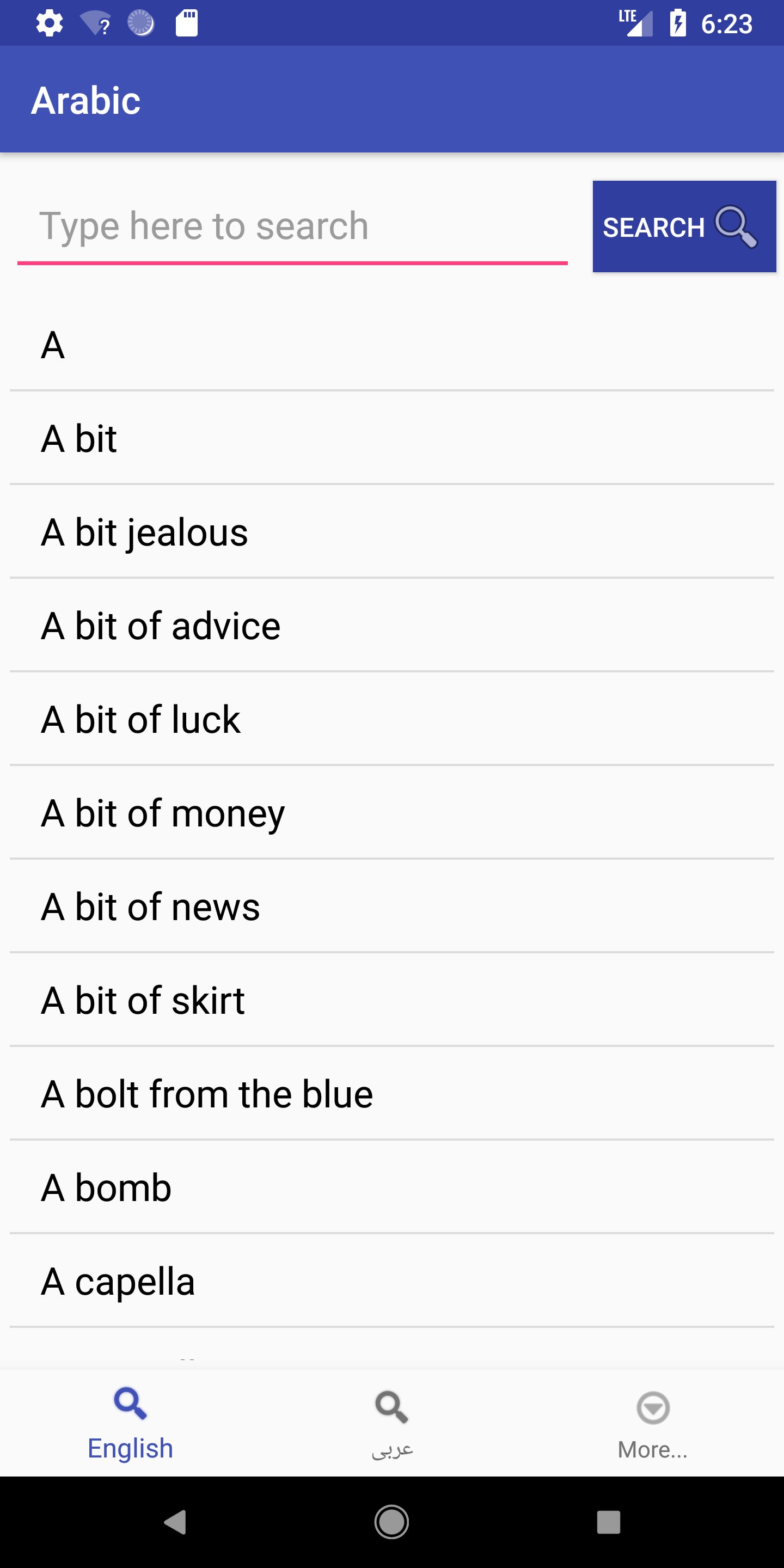 - ابحث في الكلمة العربية وسوف تعرض ترجمتها الإنجليزية.
