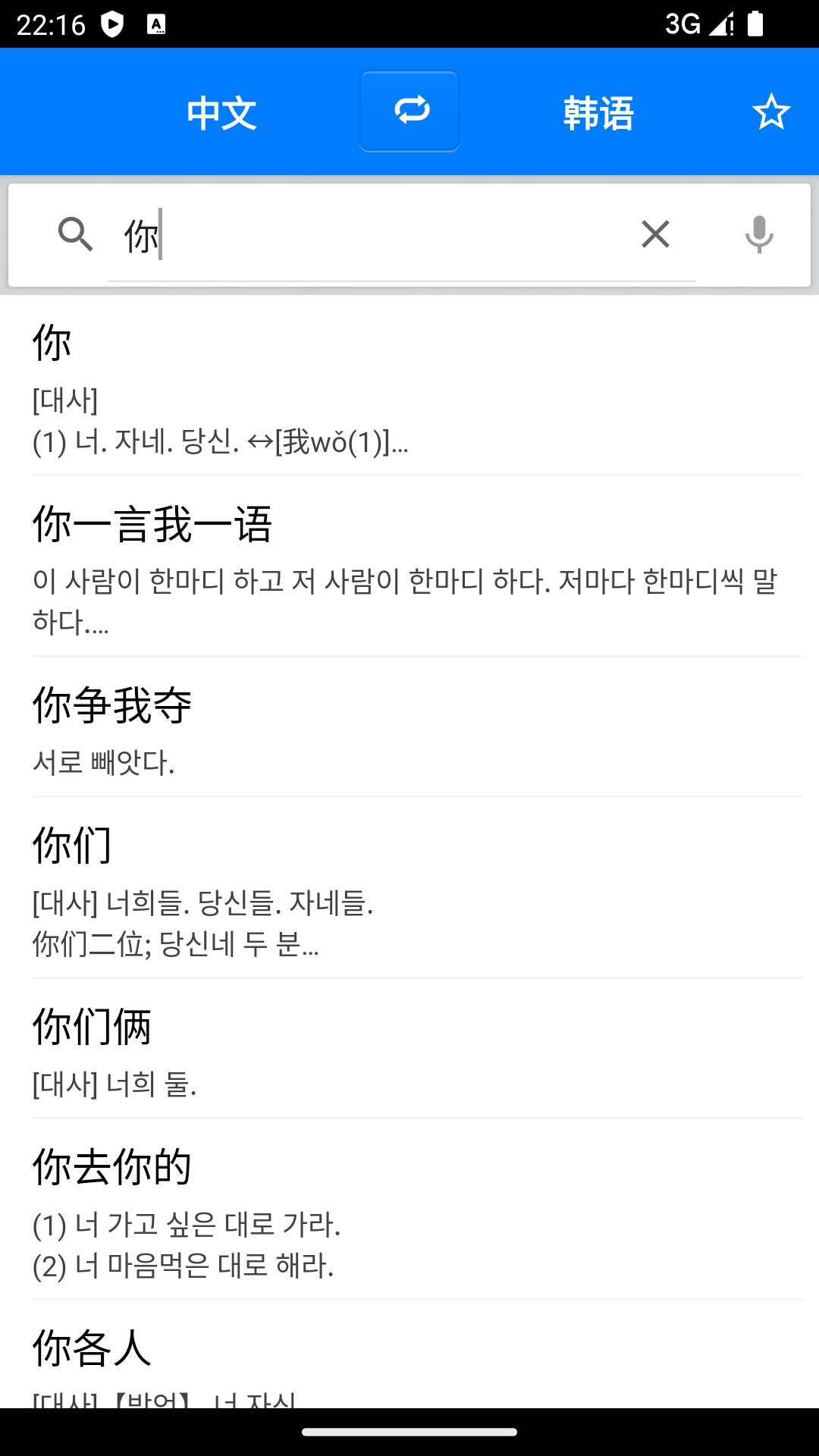 韩语中文字典 en PC
