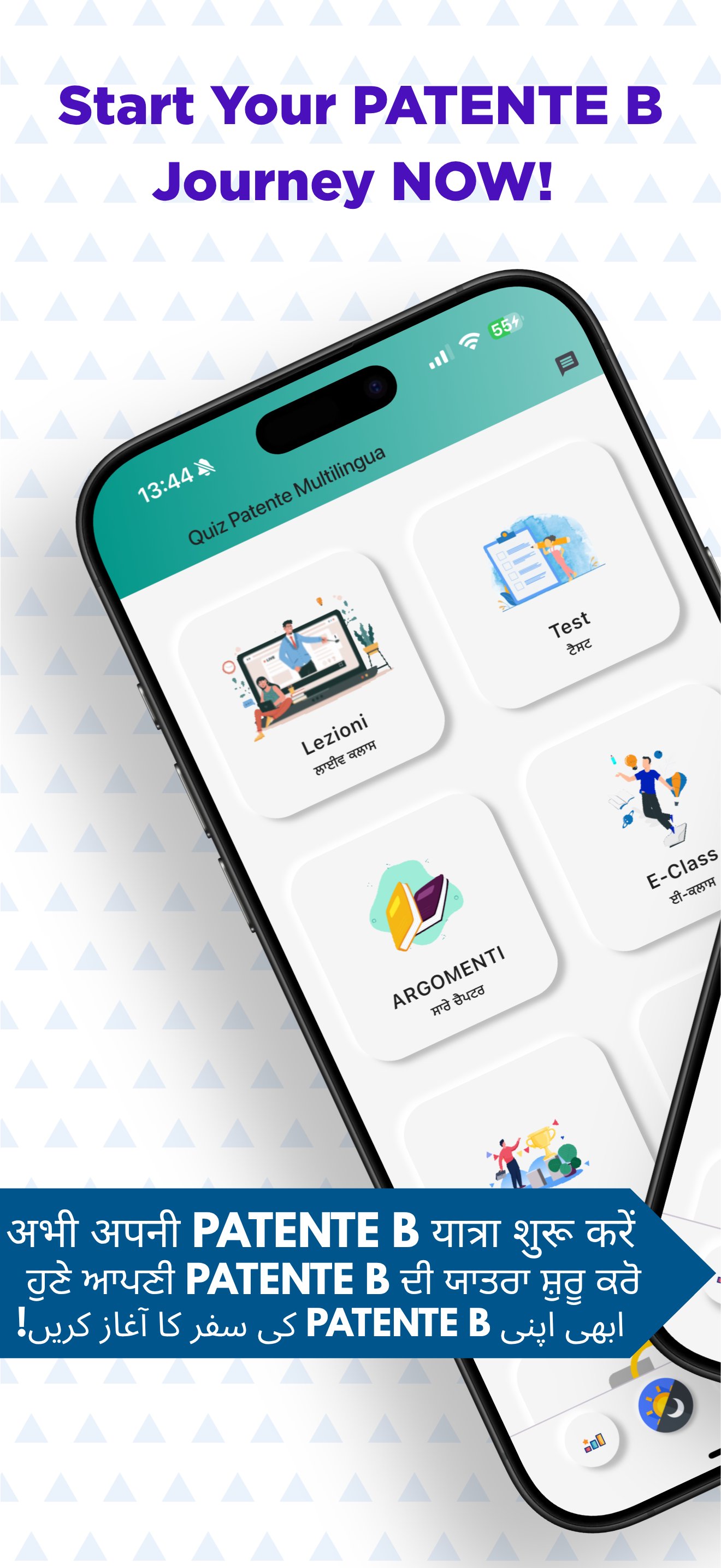 The quizzes are also translated into Punjabi, Hindi, Urdu, English, French, Spanish, Arabic to help people who have difficulties with the Italian language.