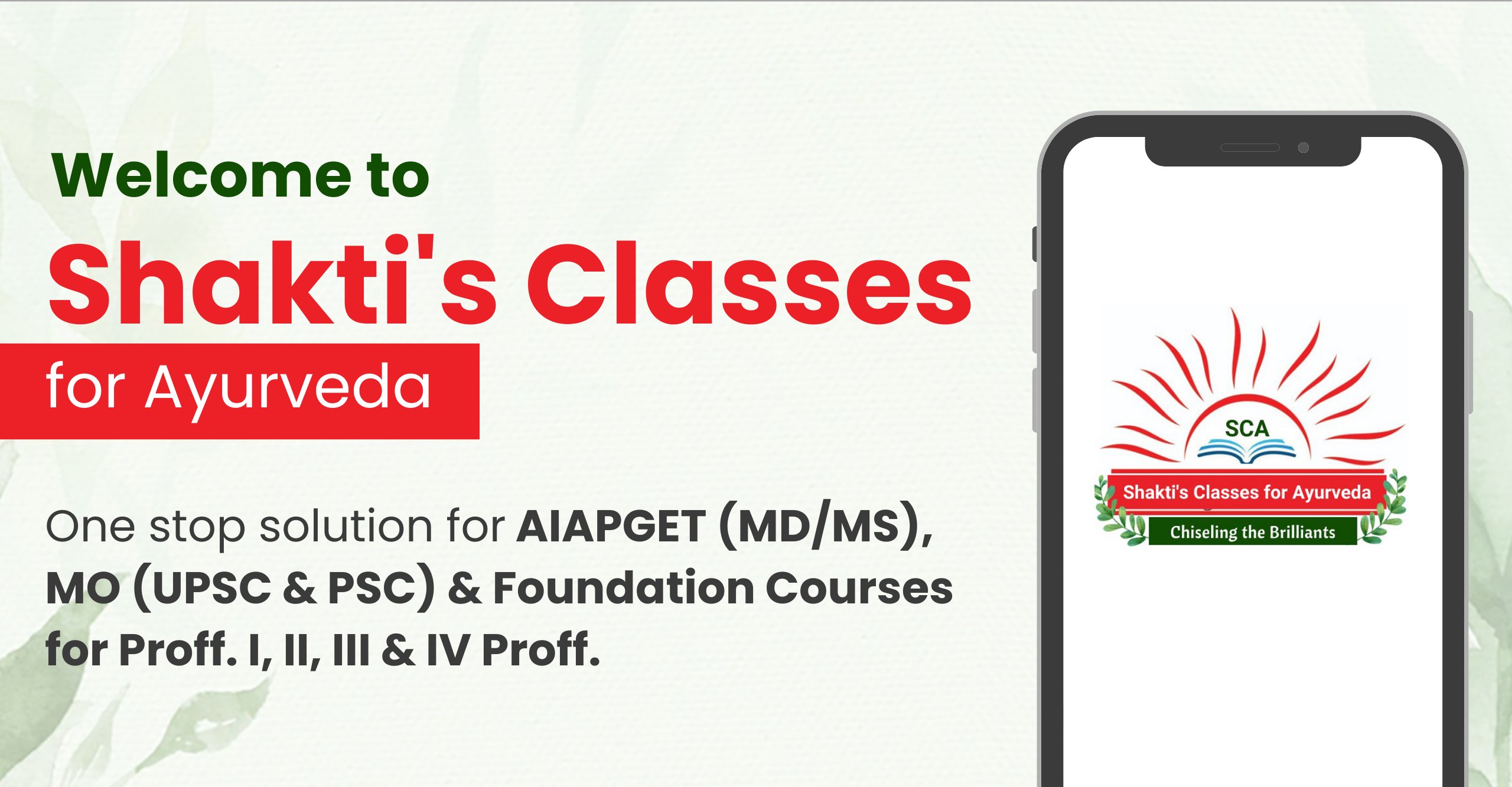Shakti’s Classes for Ayurveda was created in 2011 in Varanasi by Dr. Shakti Raj Rai with an urge to help the MD/MS(Ay) aspirants to achieve their aim. Ever since its establishment, its popularity among the students has been skyrocketing. The reason behind this is our belief that each one of you holds so much potential within yourself and it only needs to be let out. Our efforts and the compelling desire for perfection resulted in setting newer milestones of excellence which enabled us and our students to reach the apex.