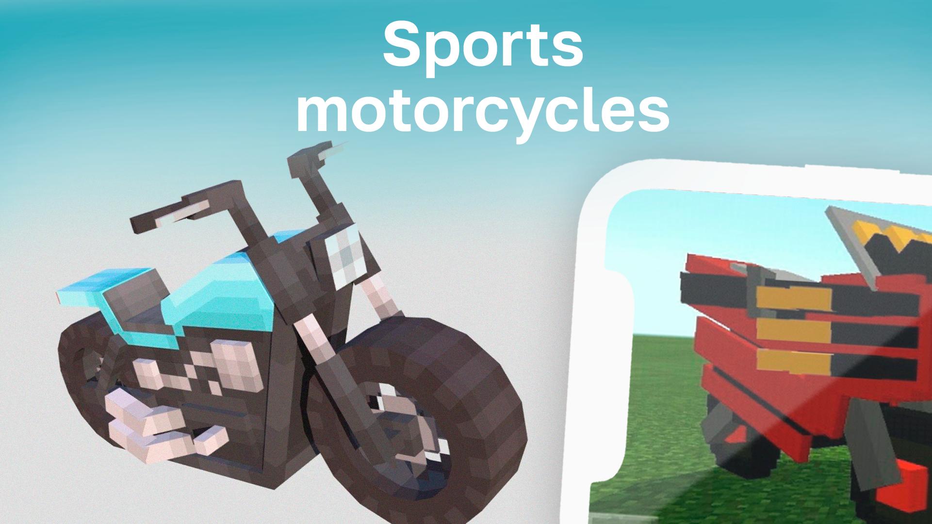 This application contains a Sport bikes mod that you can download in a few moments, because the download will not take you much time, due to the convenient and simple interface inside the application. We wish you a pleasant and fun game, along with the Motorcycle Minecraft Pocket Edition addon.