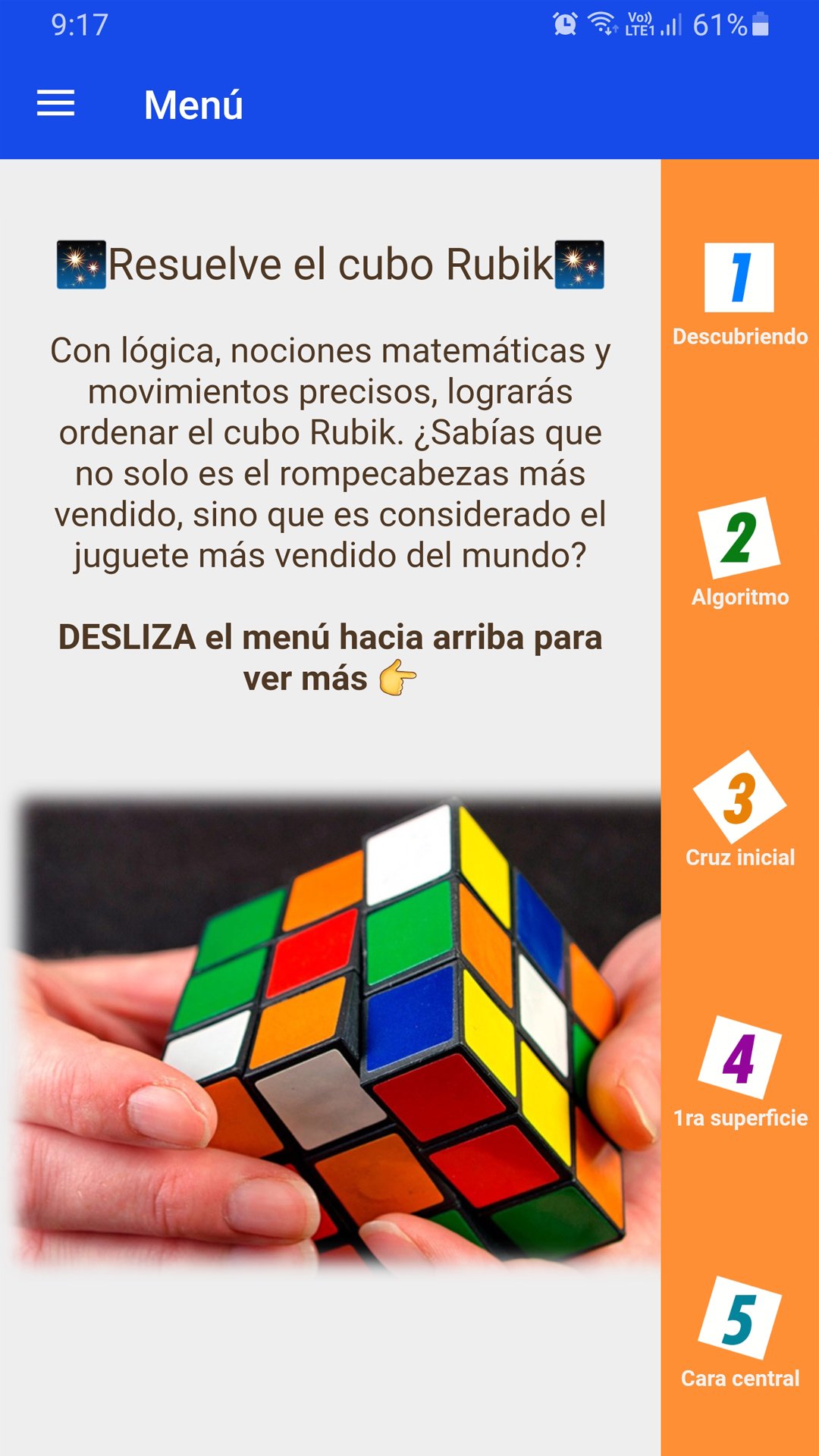 The app "How to assemble the Rubik's cube" gives you a manual entirely in Spanish that teaches you how to solve little by little, face by face, this entertainment device as classic and as popular as the Rubik's cube. The model explained in this application is designed for beginners and contains the classic method. Just read and solve!