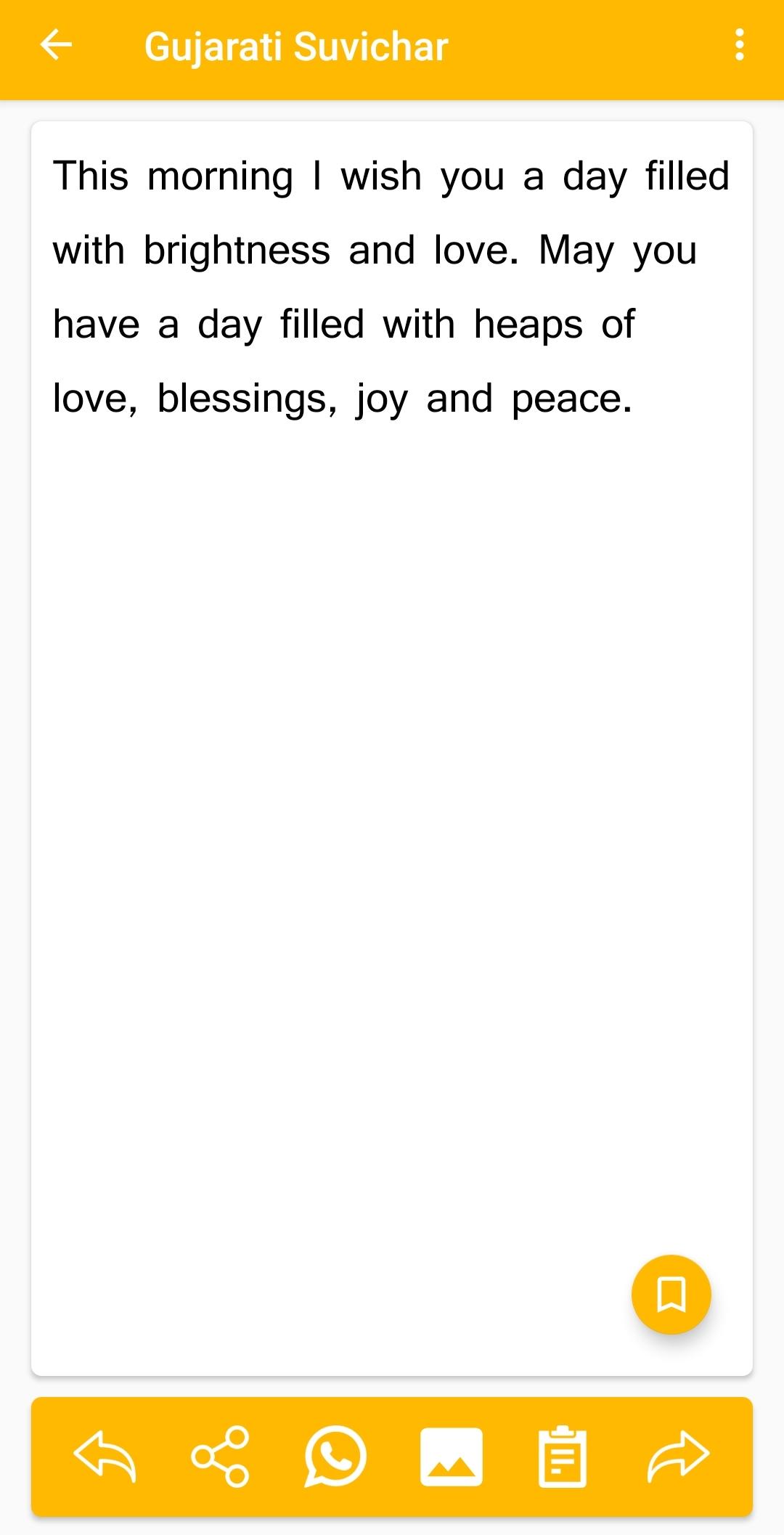* Mark as Favourite: Save and mark your favourite suvichar(thoughts) messages for quick access. Create your own library of inspirational quotes and revisit them whenever you need a boost.