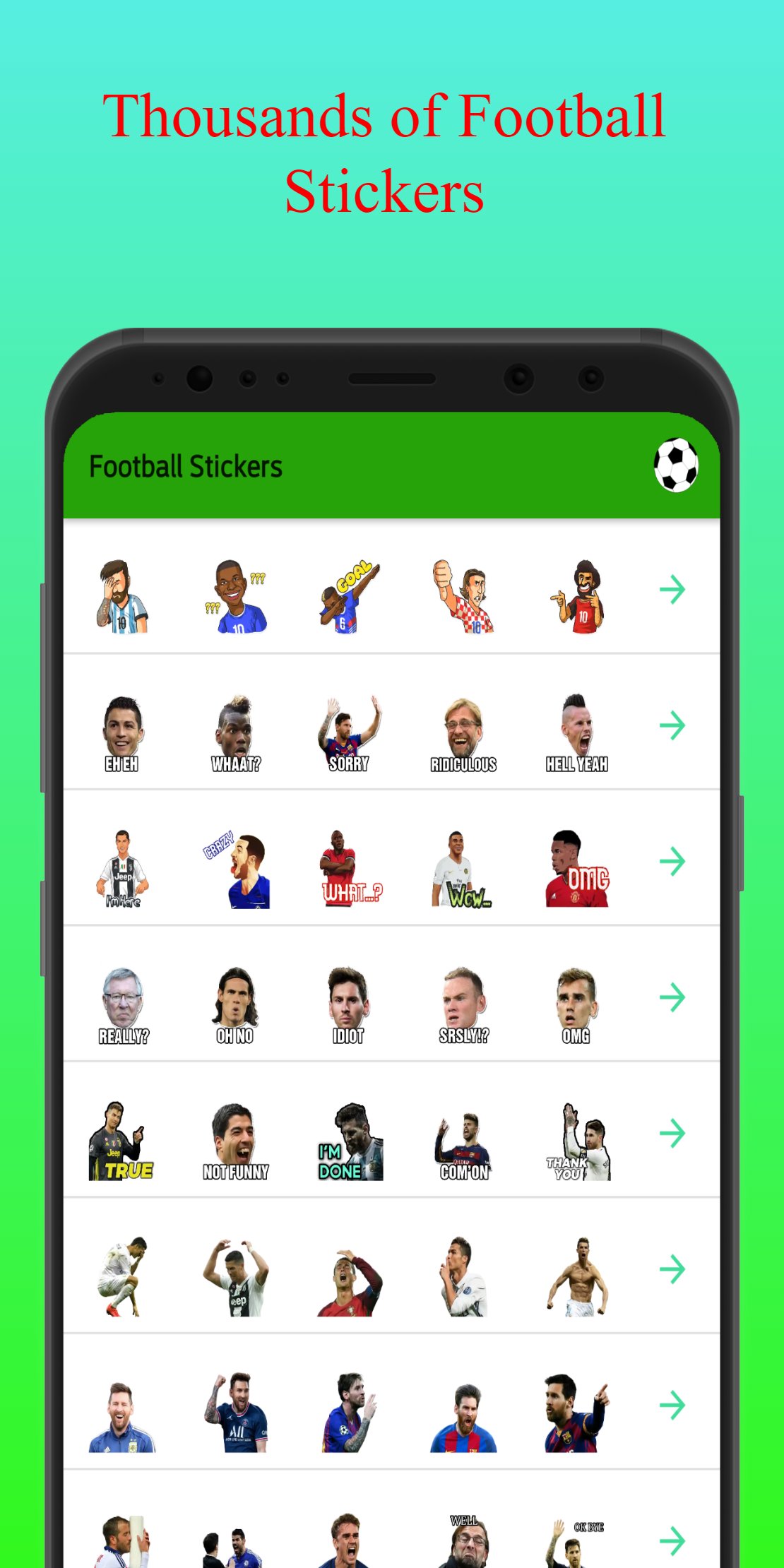 It has all the famous footballers like Cristiano Ronaldo, Lionel Messi, Neymar, Mohamed Salah, Ronaldinho, Zlatan Ibrahimović, Kylian Mbappé and many more.