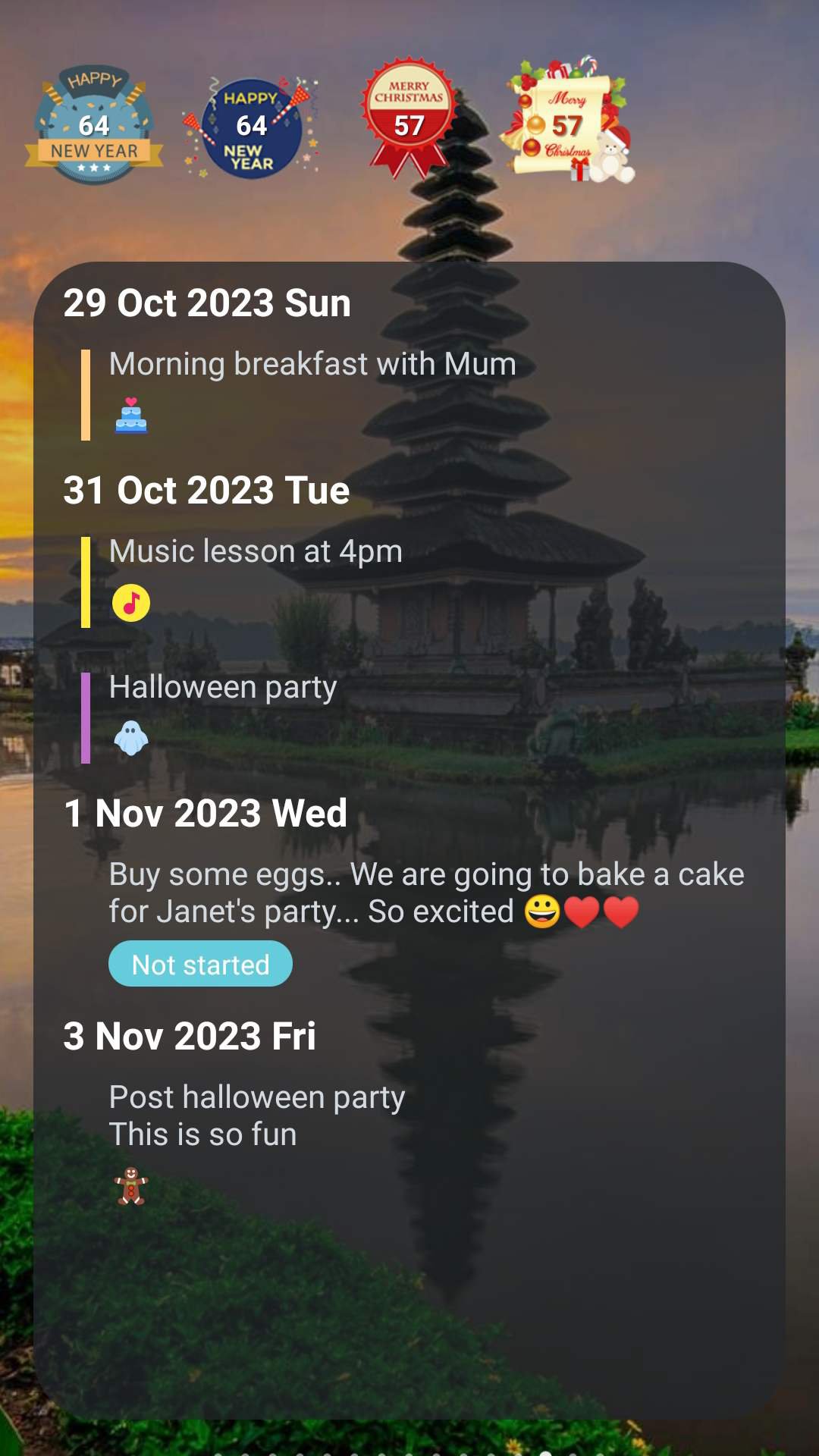Add individuality to the calendar with colors and icons. You may set the background and font color of your choice. Make it colorful to brighten up your day.