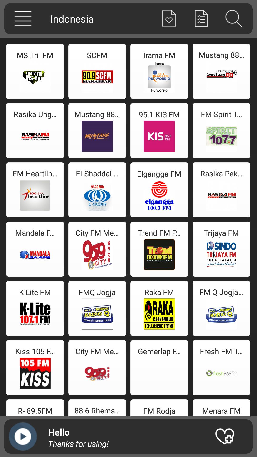 Indonesia Radio includes all Indonesia radio stations for faster, easier listening and for free. With Indonesia Radio you can quickly enjoy your favorite radios by various categories in one click, instant playback and premium quality. No headphones needed just network connection.