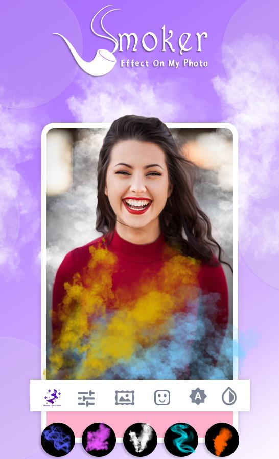 Use this Smoker Effect On My Photo or smoke photo effects app and select a pic from your phone gallery to apply simple smoke effects, 3d smoke effect, artistic smoke effects, colored smoke effects as well as rainbow smoke effects.Smoking is injurious to health