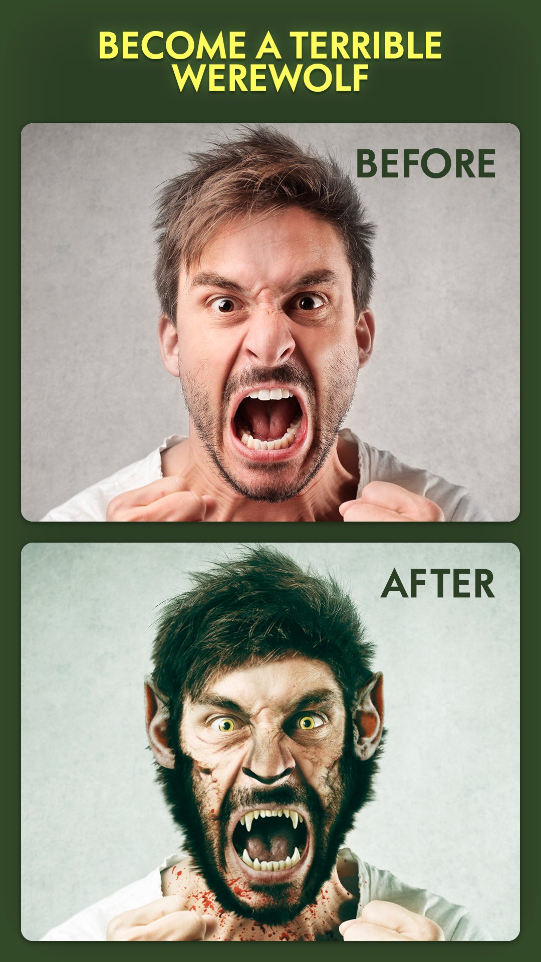 Embrace the supernatural and embark on a thrilling journey with the "Werewolf Masks: Photo Editor." Unleash your inner werewolf and create photos with picture filters that will leave your friends and followers in awe. The pictures editor helps to transform your ordinary images into authentic and spine-tingling werewolf masterpieces with our collection of stickers. This horror camera is your gateway to the mystical world of lycanthropy and a variety of photo filters. Prepare to howl at the moon in style - download "Werewolf Masks: Photo Editor" now and dive into a collection of filters for pictures, stickers, face filters, masks with the photo editor free. 🐺🐾