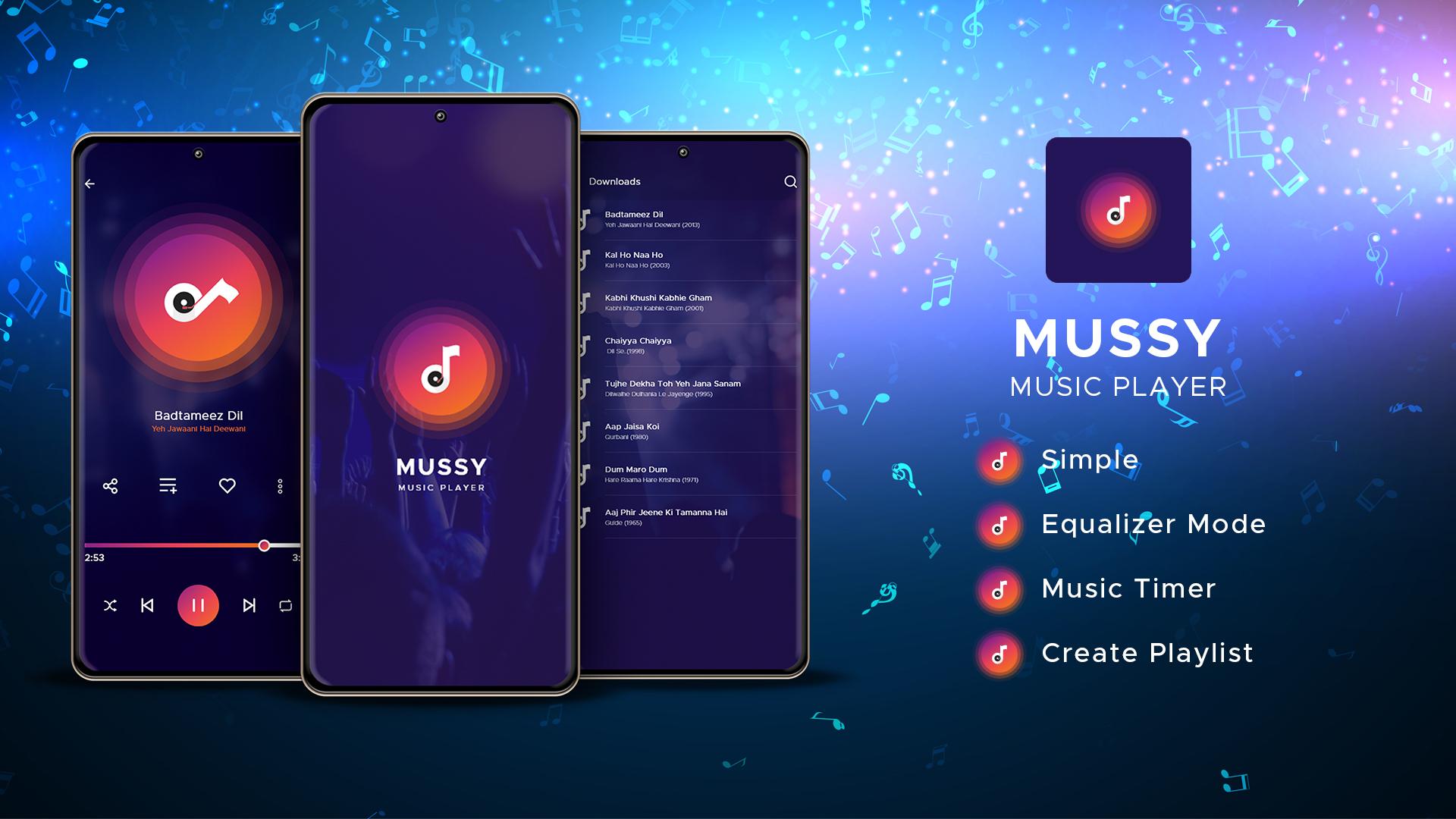 Mussy player was designed to bring better experience to user when they listen to music. Music player scans all music automatically and group them by title, artist, album. Easy to find the song you want. Supports audio equalizer to improves music sound, you can customize with own style.