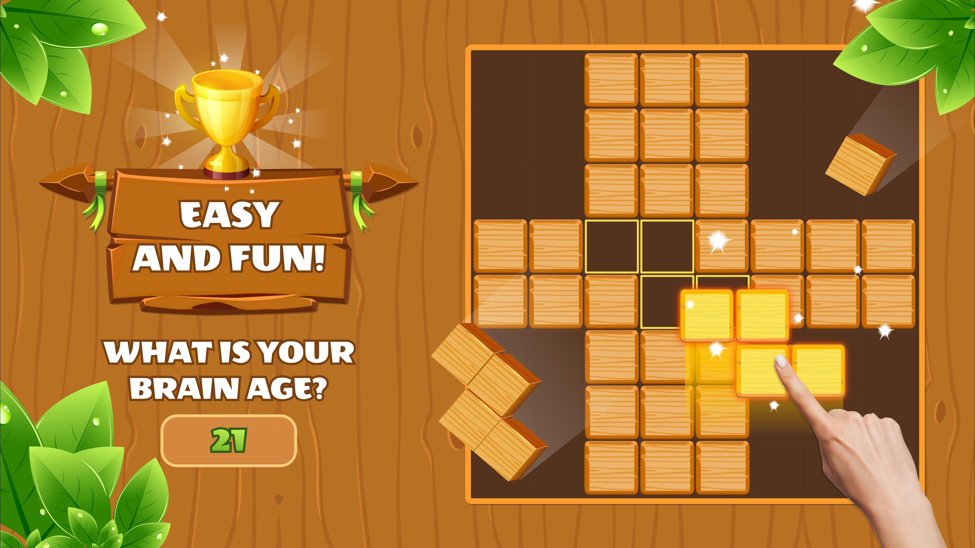 All levels of this wooden block puzzle game are designed very intelligently, players must use their logical thinking ability to put blocks of different shapes in the right positions. Requires strategy to make decisions and give the highest score player trophy or end the whole game!