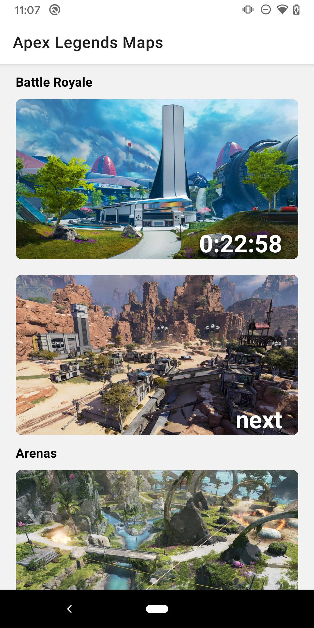 Apex Maps shows the current map for all game types along with the time remaining for the current map as well as the next map for each game type.