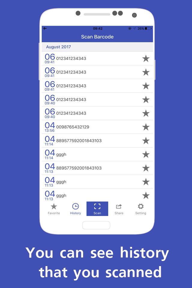 Enjoy your life with this Barcode Scanner application. It use for free, it's very easy to use, just scan any bar code with the app and navigate to the result. You can share the code immediately. This application can also keep log or history of barcodes. Support URL EAN UPC ITF USS Data Matrix and many more. If you like this Barcode application please vote for us.