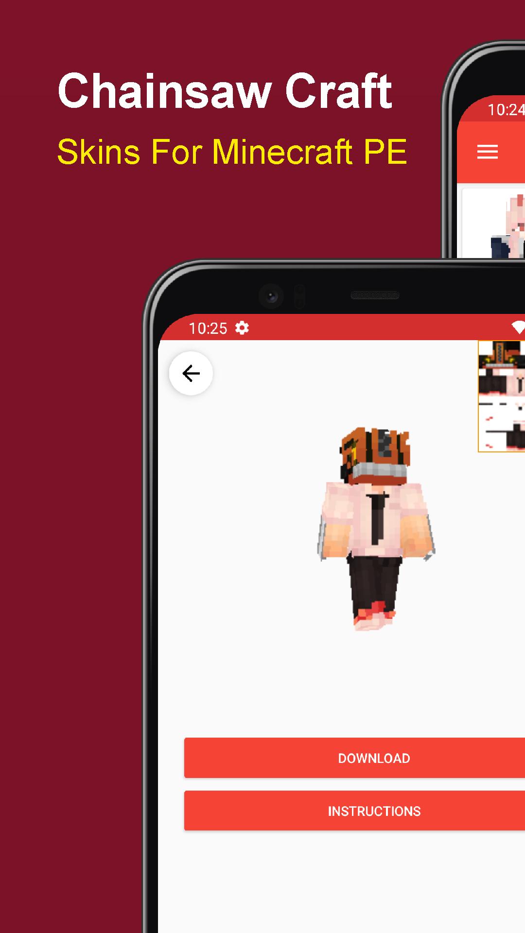 Change the default skin in Minecraft is easy, just download and putting on it. If you like playing minecraft and looking for characters chainsaw minecraft skin, then this app is very useful for you!