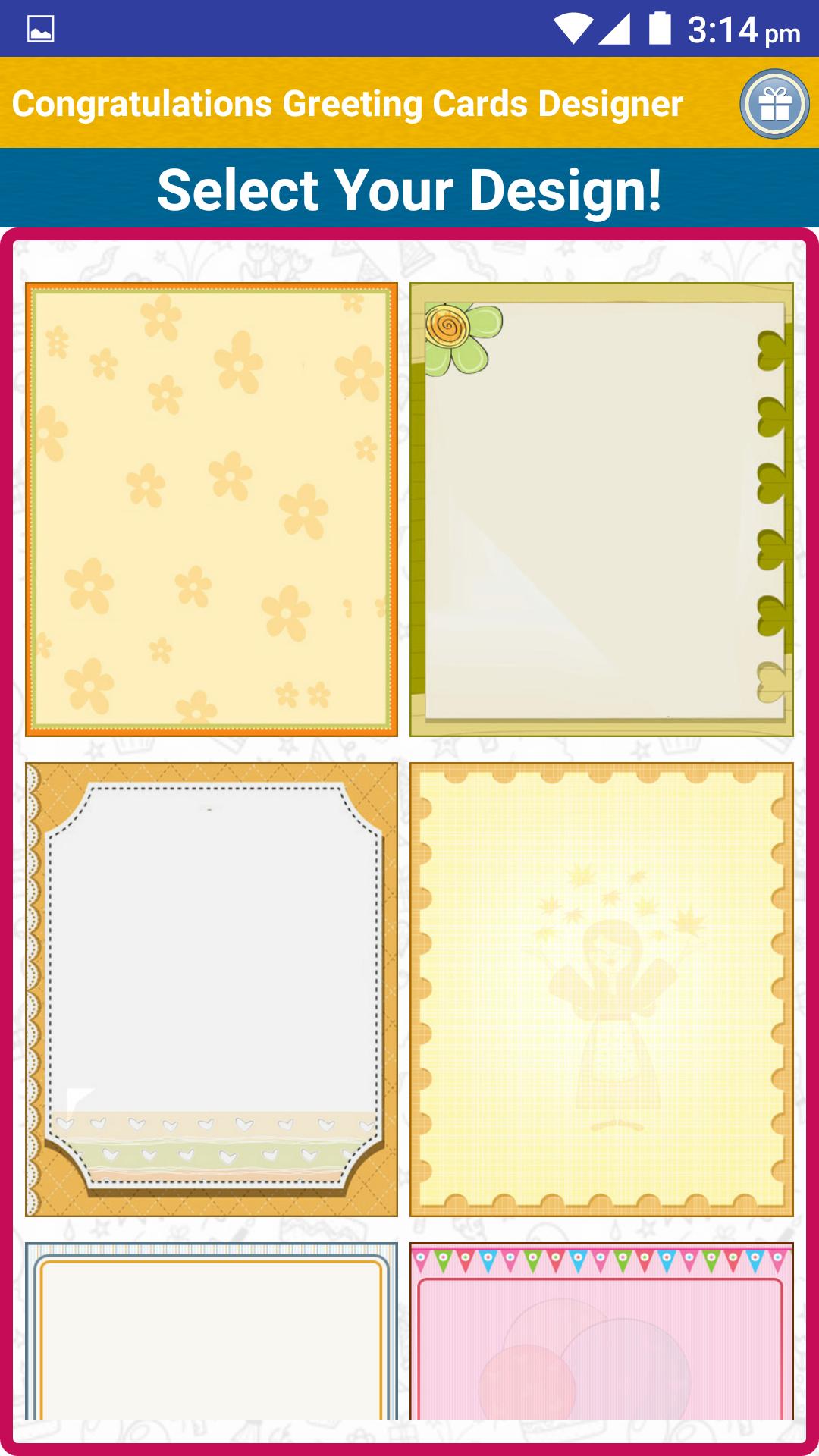 Congratulations Wishes Greeting Cards Designer is a Free app that allows you to Design & Share beautiful Congrats Greeting Cards & wishes and send to your loved ones in 3 easy steps from our Free Card Templates as easy as: