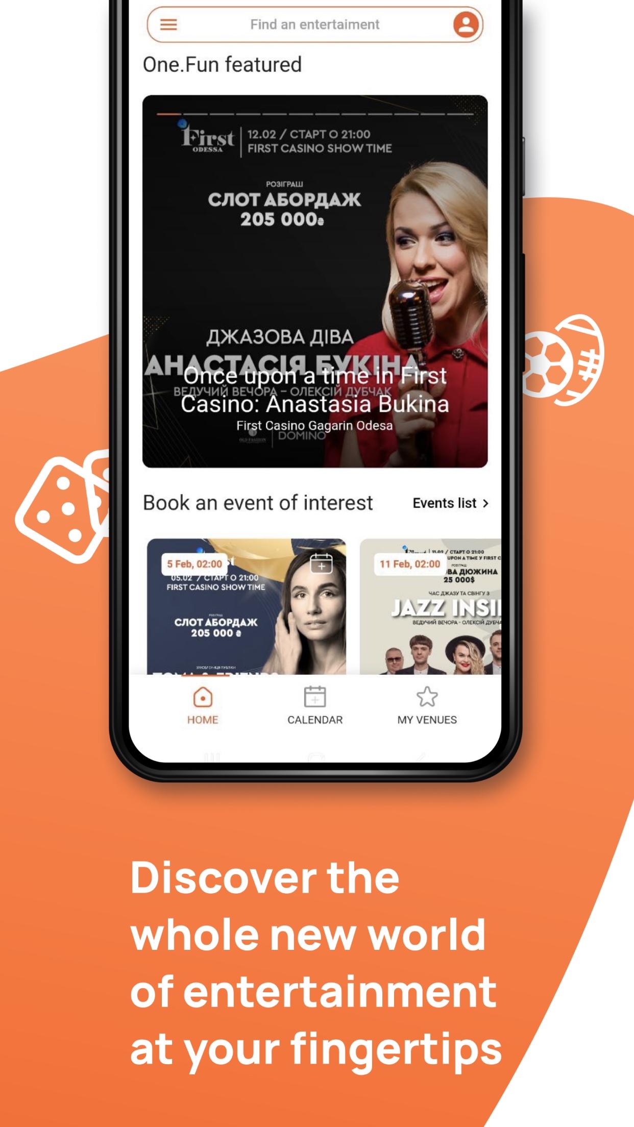 Let the application suggest you hotels and accommodations available in the nearest proximity from the selected event, as well as flights from your current location to the entertainment destination.