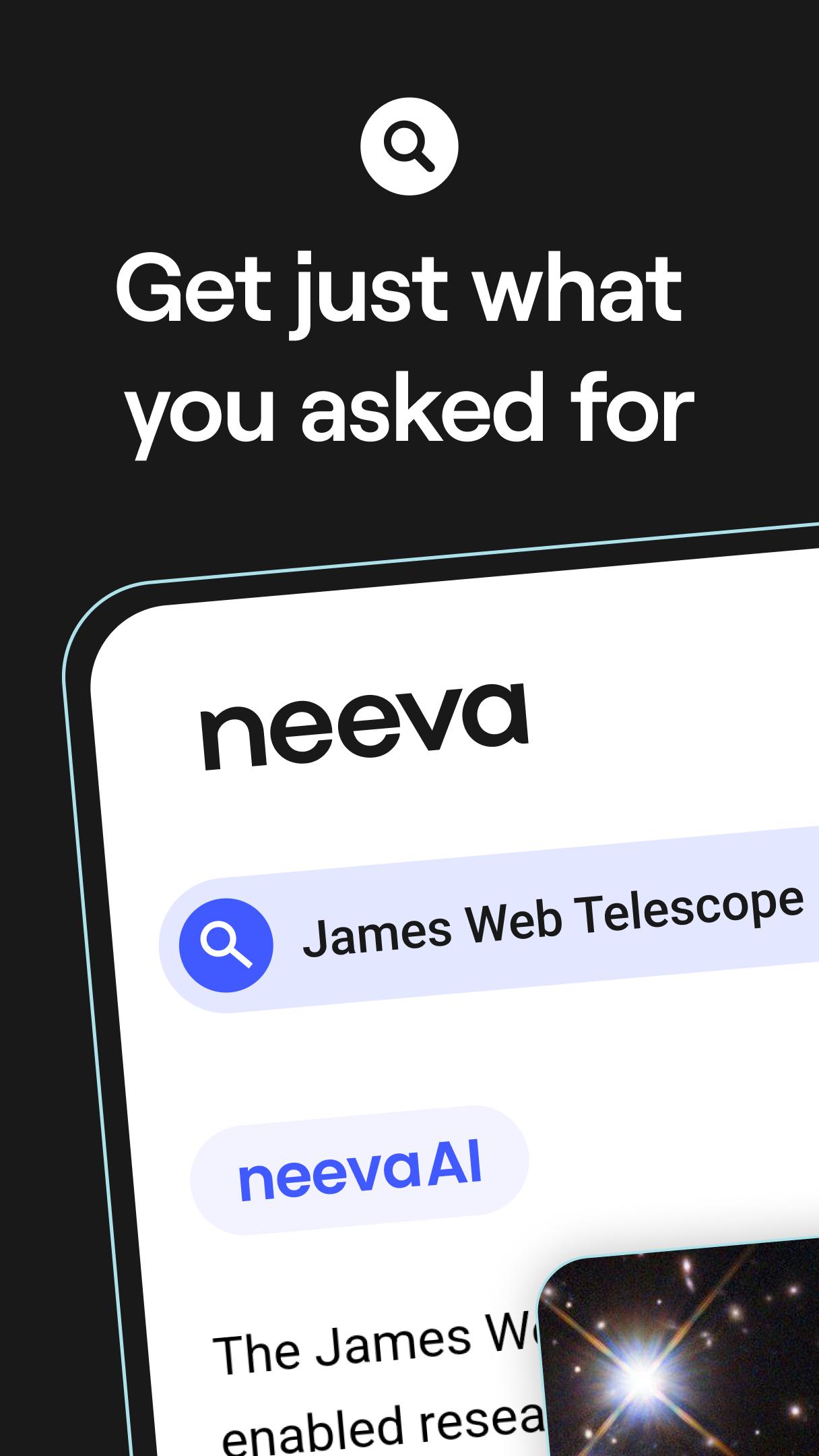 Why search through your search results? Get just what you asked for with Neeva's AI-powered answer engine, embedded right in your mobile browser! We give you accurate results, eliminate distracting ads, and value your privacy.