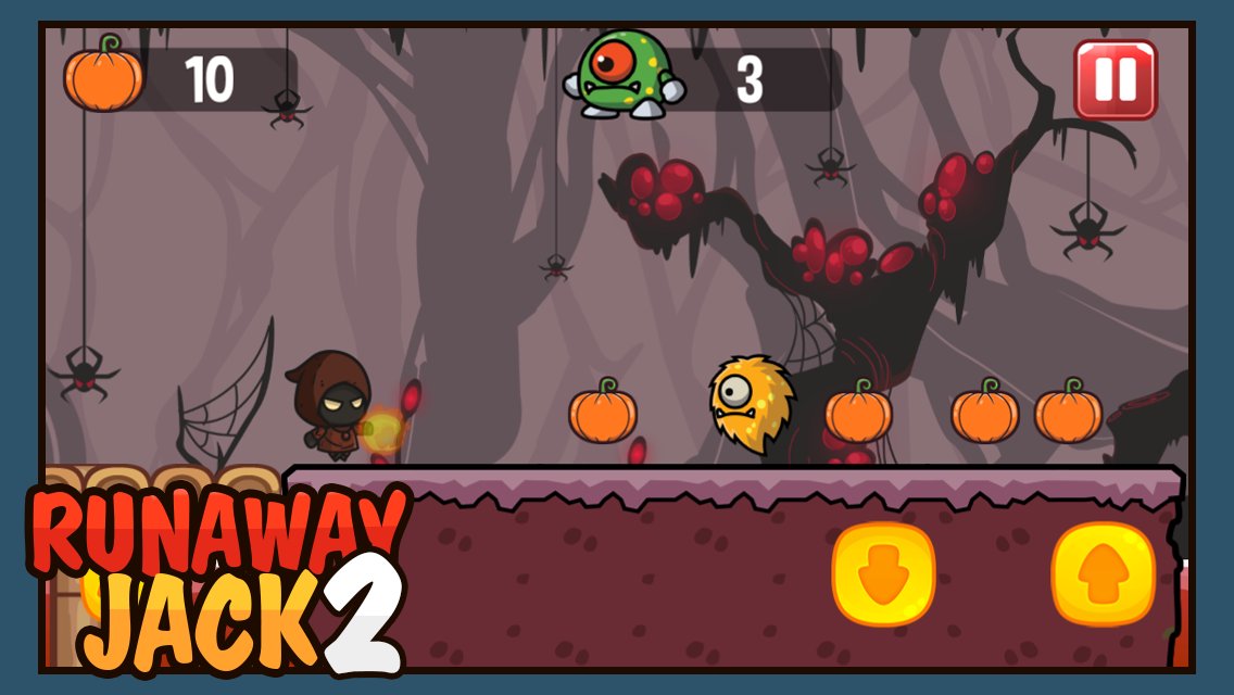 Runaway Jack 2 - Shoot the monsters with the fireball in the Halloween world, play with awesome scary characters and unlock more by collecting pumpkins