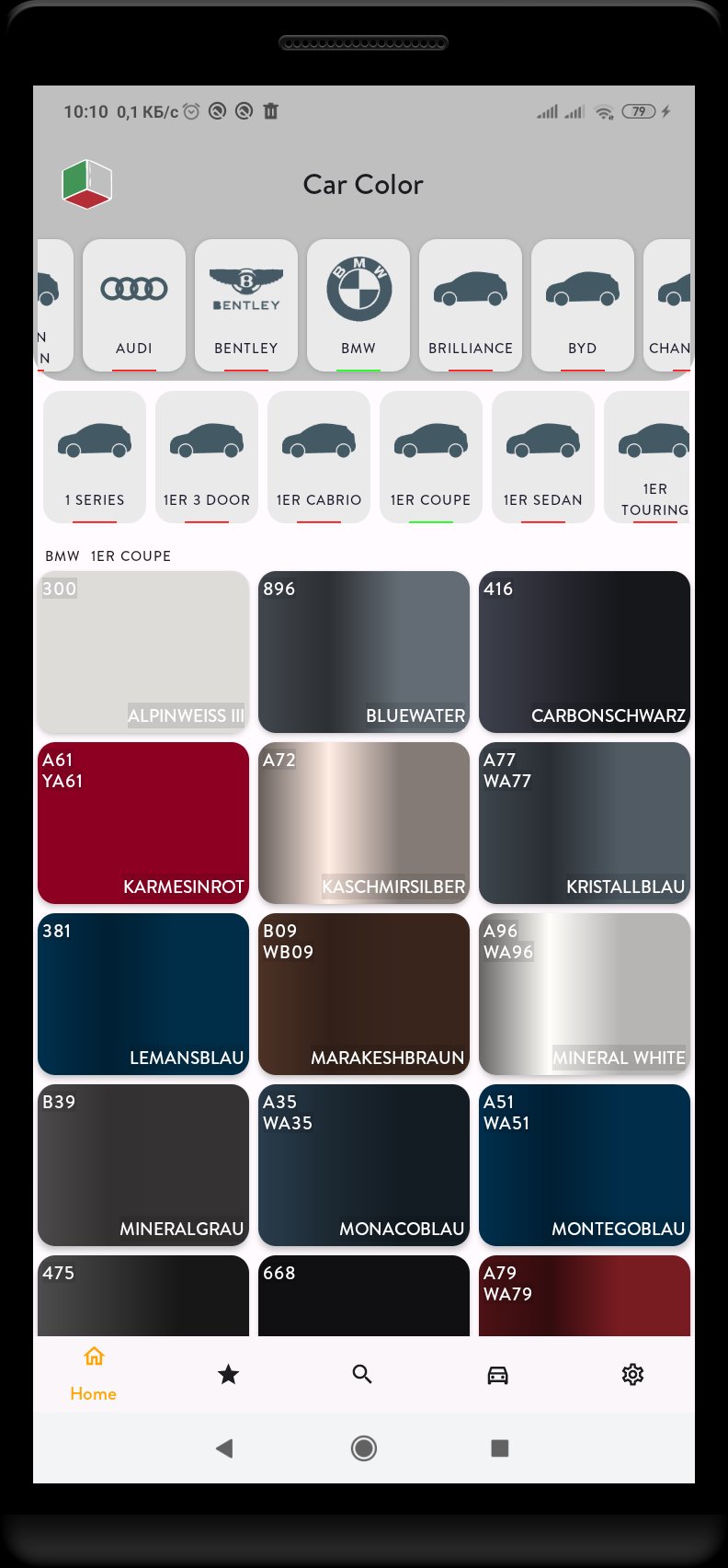 A convenient search will help to select the color of car paints by name or digital code.