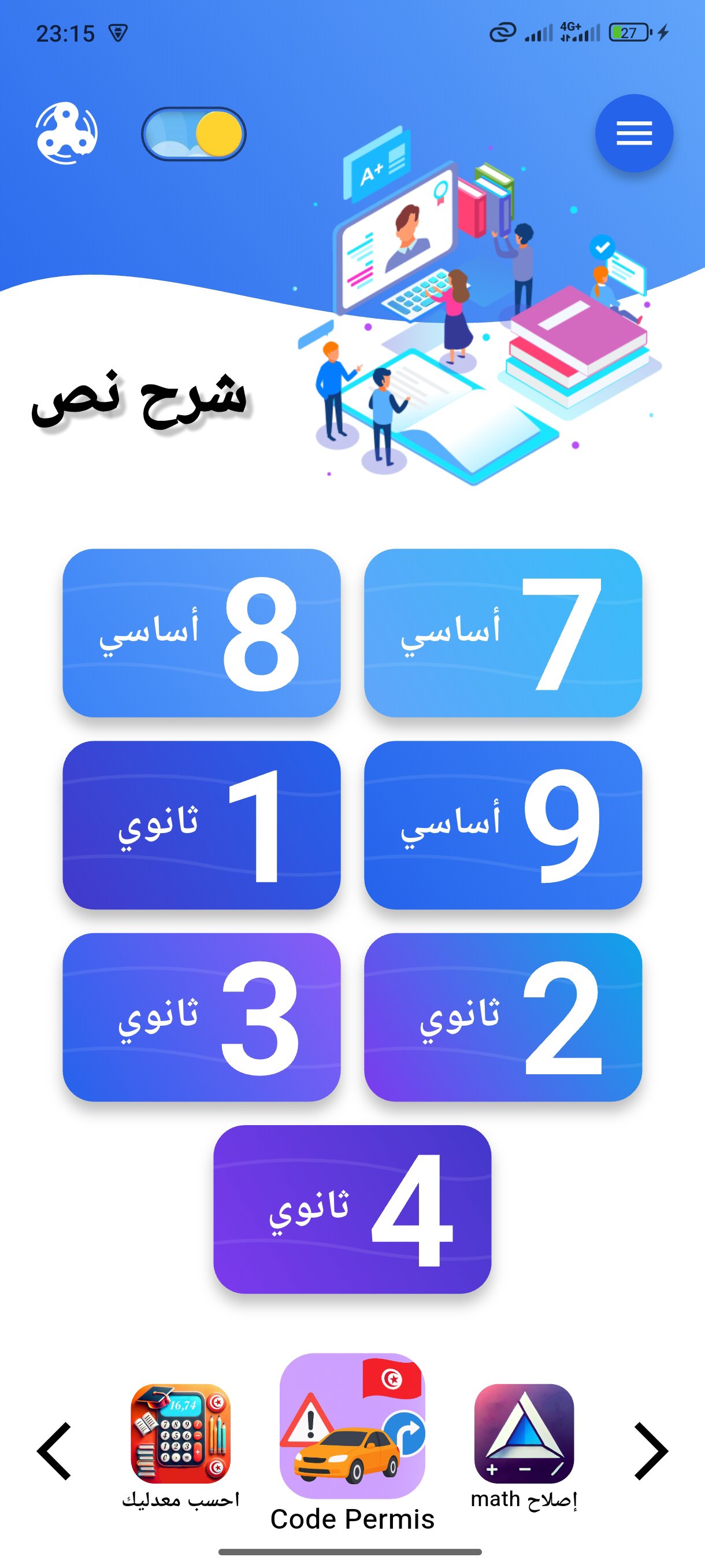 The application is a booklet explaining the text for all academic levels, the aim of which is to help the students to serve the explanation of the text, and the application has been added to it, sweet and easy to use.