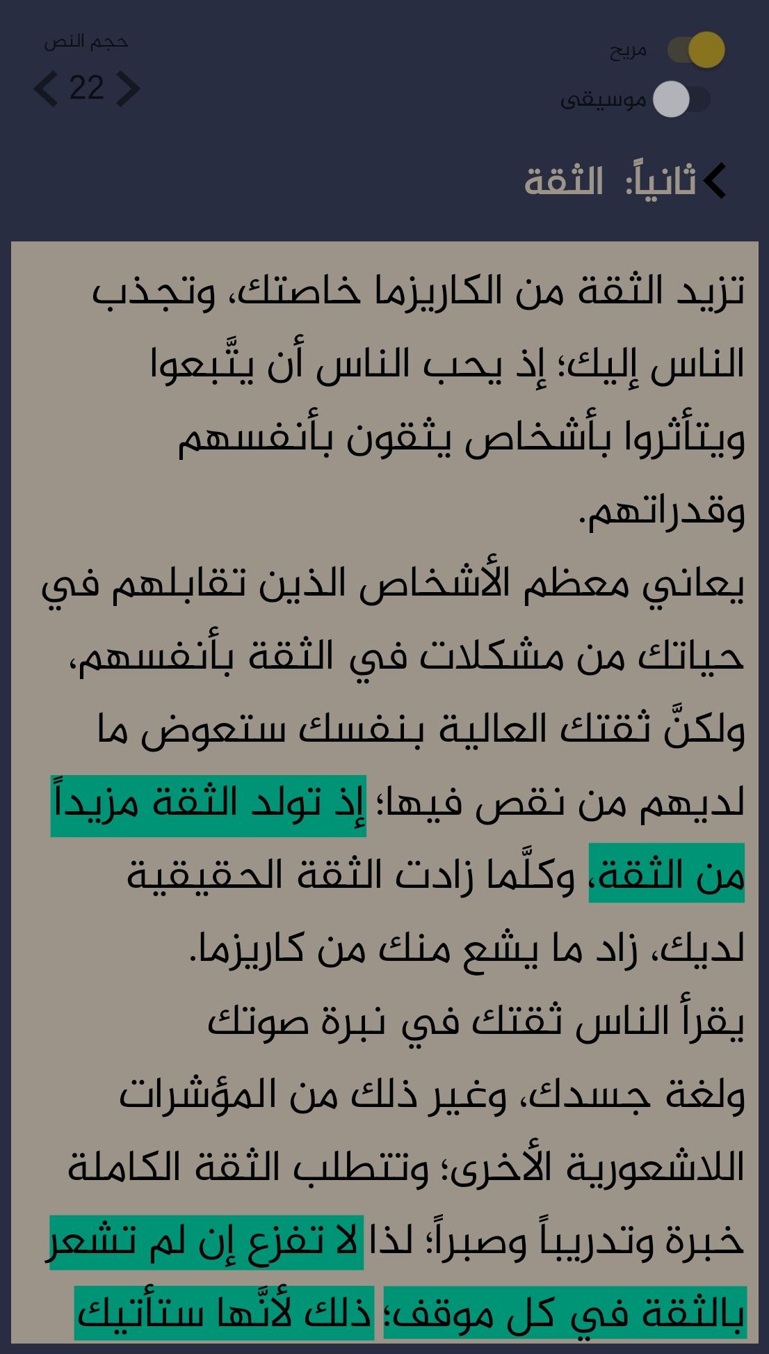 مرحبا! هذا تطبيق جذاب وصغير بالحجم يختصر لك كتاب قوانين الكاريزما بـ 30 فقرة مهمة لتطوير الذات وبناء شخصية قوية لا تخشى التوتر والفشل!