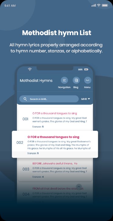 This application contains all the Methodist hymns (Yoruba/English) with tunes. It also include Canticles, Wesley hymns, Yoruba Bible, Holy Communion, Ghana Anthem, Akokun and other Methodist vital information.