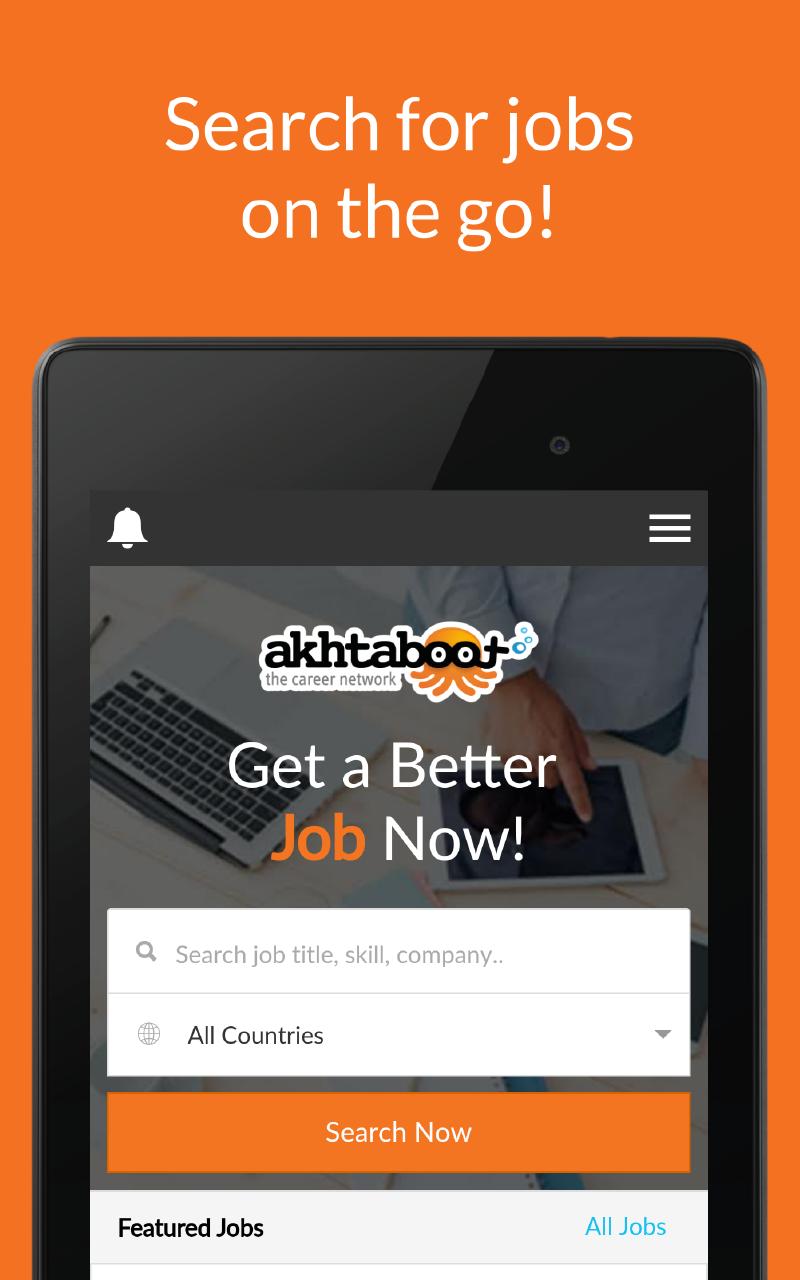 Search for your next job on Akhtaboot newest application. More than 5,000 job opportunities awaits you, from more than 20,000 companies and talent seekers in Jordan, Qatar, Kuwait, Egypt, Saudi Arabia, United Arab Emirates, and more! Look for vacancies on the go, and apply any time you wish.