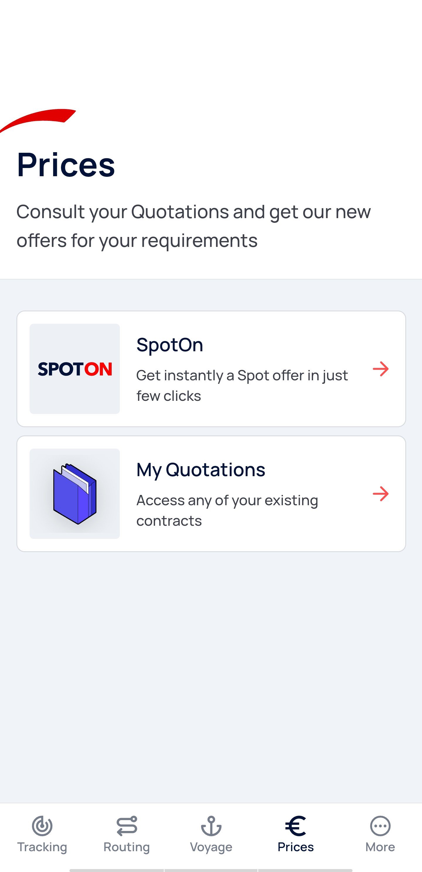 Check all your existing quotations online or get a new instant quotation when no existing quotation is available, thanks to our pricing features. You can also benefit from our SpotOn offers to get a quotation quickly with secured spot onboard.