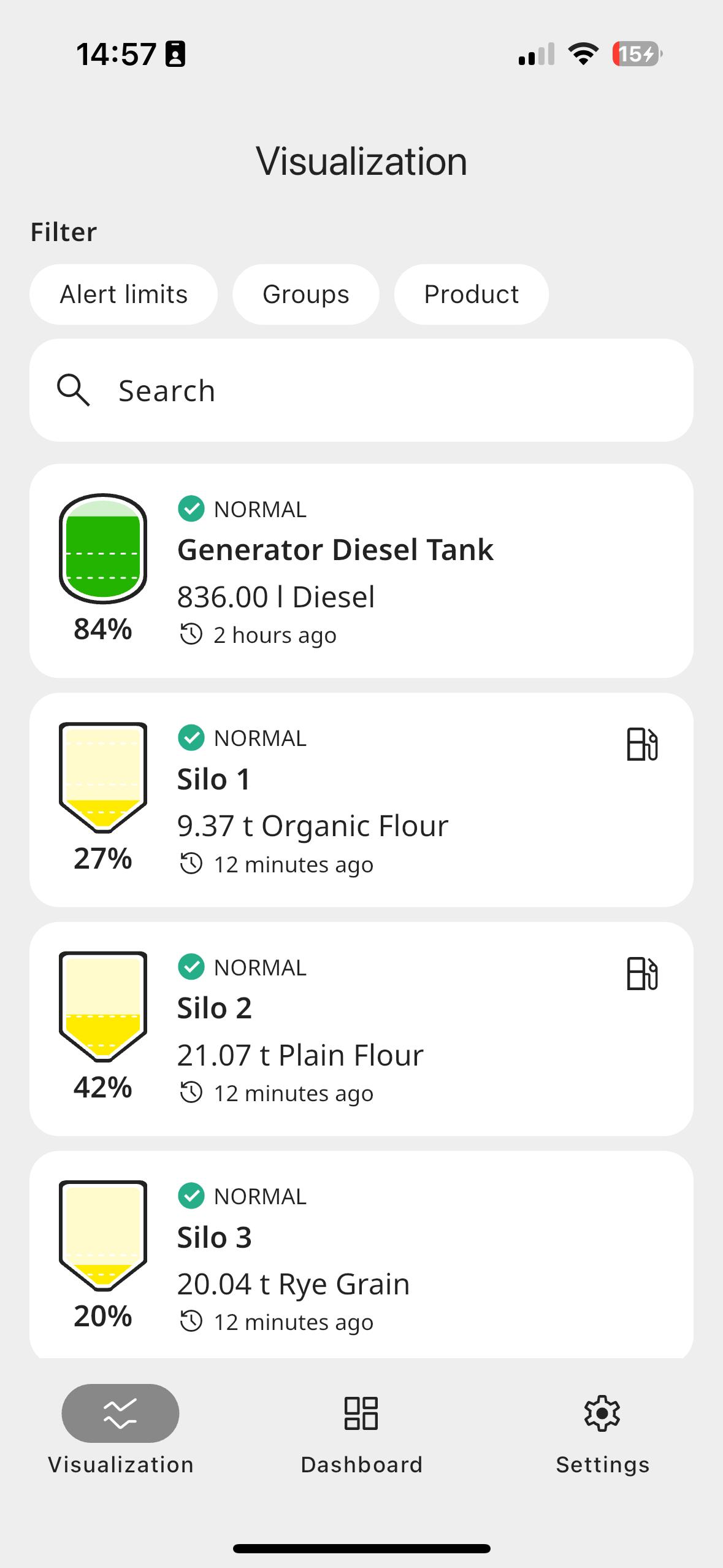 VEGA Inventory System is an app for use in conjunction with the VEGA Inventory System visualization software. The app allows the user to remotely access important level, inventory and location data to ensure continuous monitoring and efficient inventory management of storage supplies such as tanks, silos and mobile containers.
