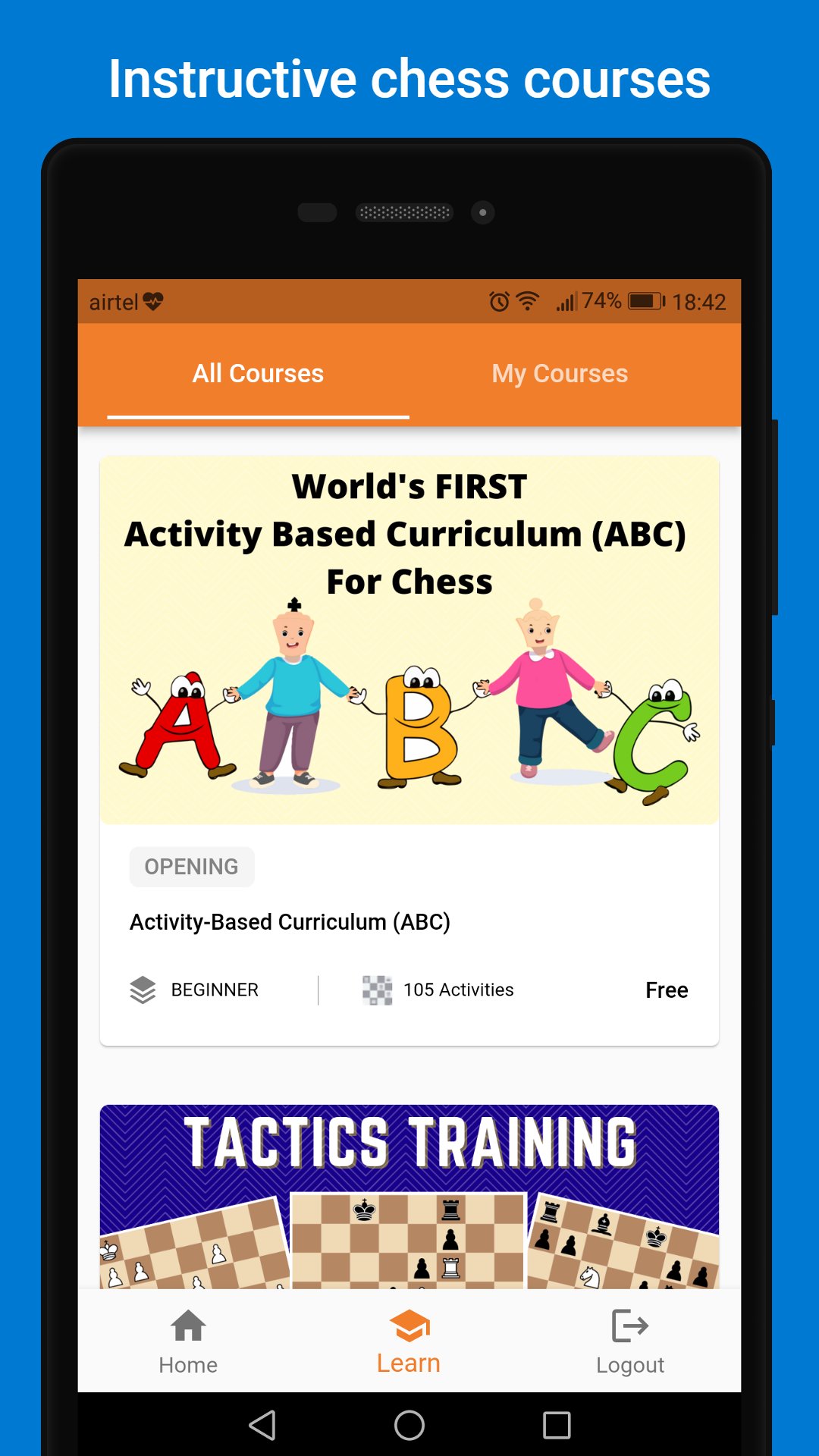 It's time to learn interactive chess courses with activity-based solving! Our courses have hundreds of activities from various learning levels. The different types of interactive activities help you digest the information easily. 1) Explanation Activity: This will teach you a concept in a concise way. 2) Capture Activity: The most fun and engaging way to learn piece movements and captures. 3) Puzzle Activity: Solve interesting puzzles and tactics from a given position. 4) MCQ Activity: Test your knowledge with quiz-based multiple-choice questions. 5) Play with Computer: Train your skills by practicing must-know positions with the computer.