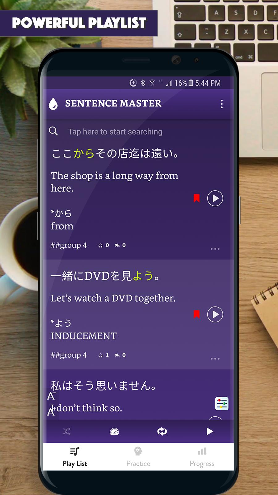 Build your vocabulary with Japanese 5000 Daily Phrases & Sentences for your Android device. Quiz yourself every day to learn the most important words in Japanese. Our app helps you improve your vocab and prep – now you can practice and improve your vocabulary anywhere, any time!