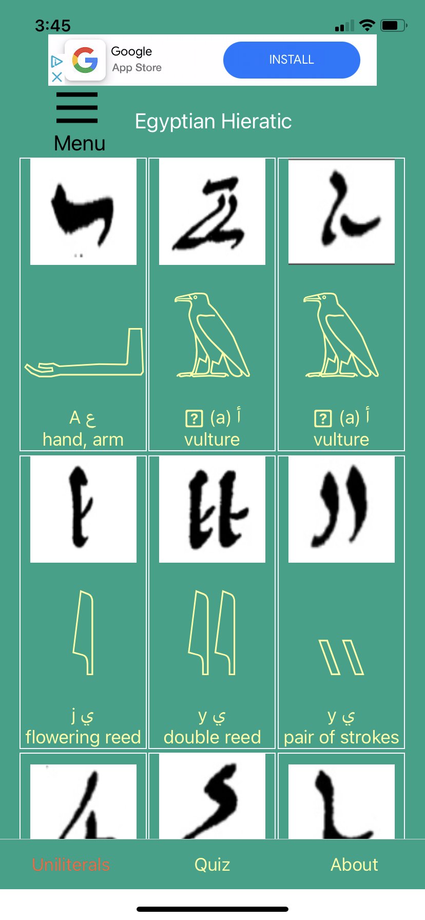Nile Valley Hieroglyphs & More ، القادم من المطور إيثان هارتزل ، يعمل على نظام Android في الماضي.