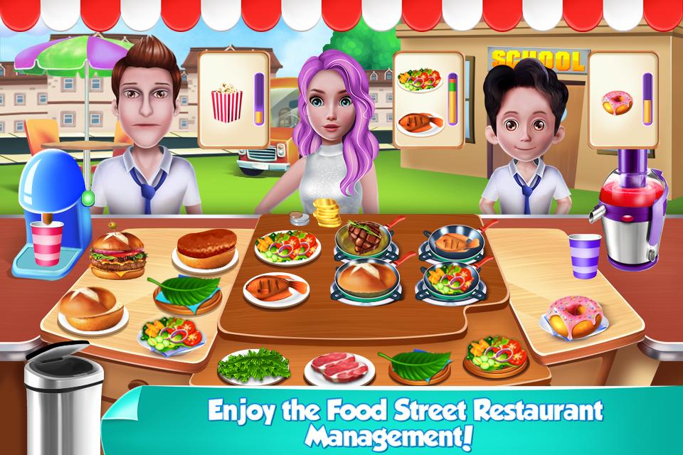 Street Food Truck Canteen Cafe Cooking Games Features: