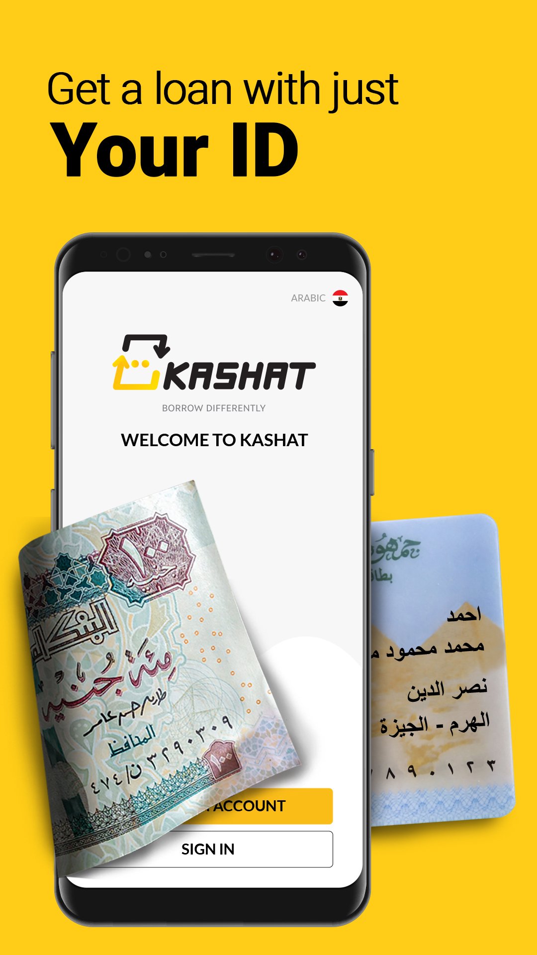 When you download Kashat, you will be required to scan your National ID in order to verify your identity and grant some android permission to your phone, the permission may include the camera, contacts, location, and others.