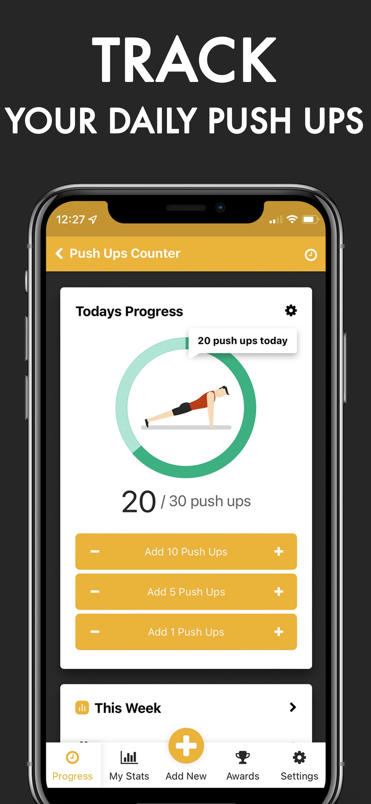 Count your push ups, track your pushup progress and complete the 100+ a day pushup challenge with Push Up Counter.