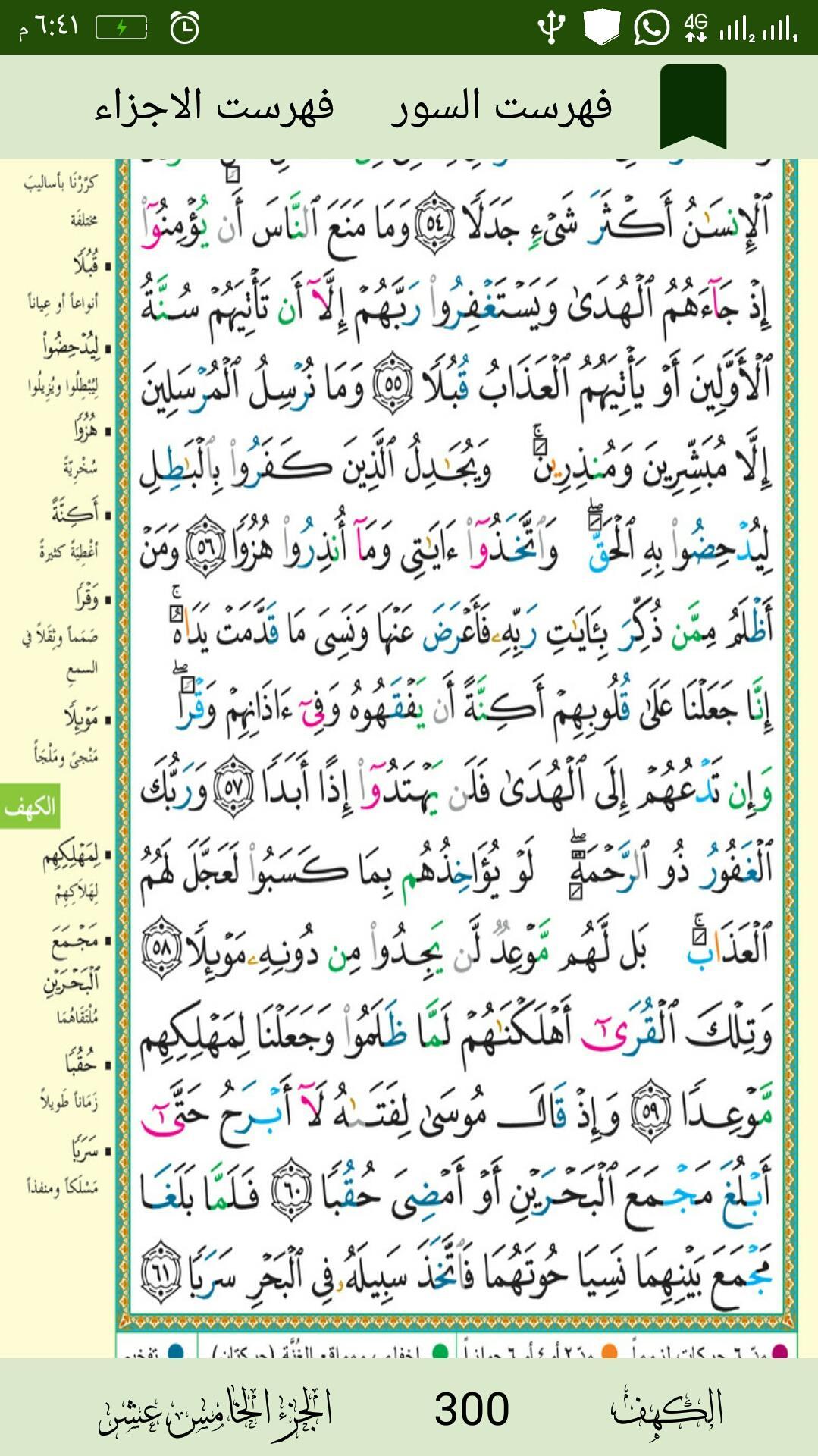 The Koran completely without an Internet connection is completely identical to the Koran paper in addition to the characters colored on the basis of Tajweed and there are meanings for the vocabulary in the same pages as there is the possibility of marking and index the fence and index parts and the possibility of moving to any page and the program maintains the status of the screen lit for those who wanted to continue reading for a long time If you close the program at a certain page and open it again, it will automatically go to the page where it was closed