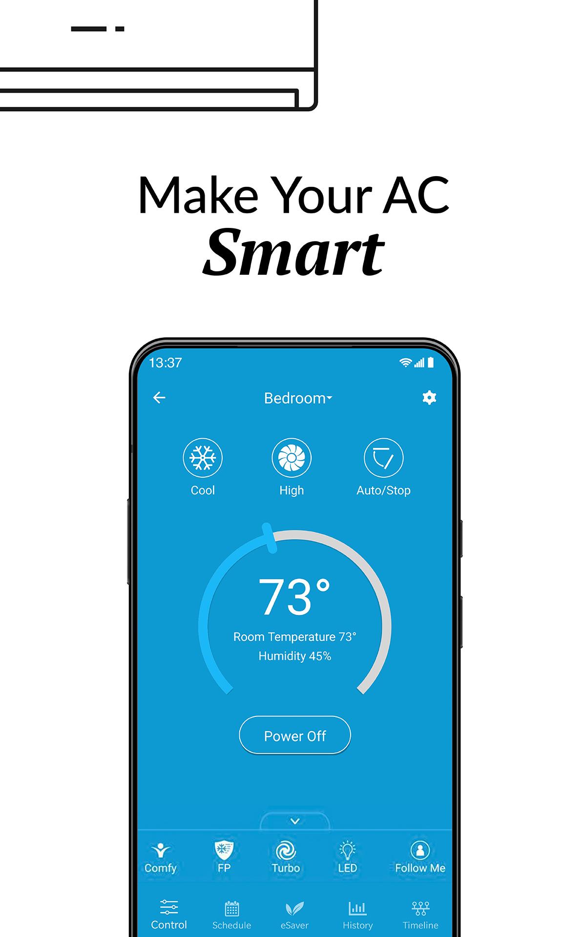 You can set weekly schedules for your air conditioners, monitor usage history, set air conditioning action in relation to your locations, see the air filter status of your AC and lot more. You can set intelligent temperature based triggers for your air conditioners by using the ‘Comfy’ feature under ‘My Rules’ section of the app. Comfy lets you set triggers to personalize the operation of your AC. It helps you automatically change your AC settings if room temperature goes above or falls below a pre-set value. It helps you reduce your energy bills with lot of convenience.