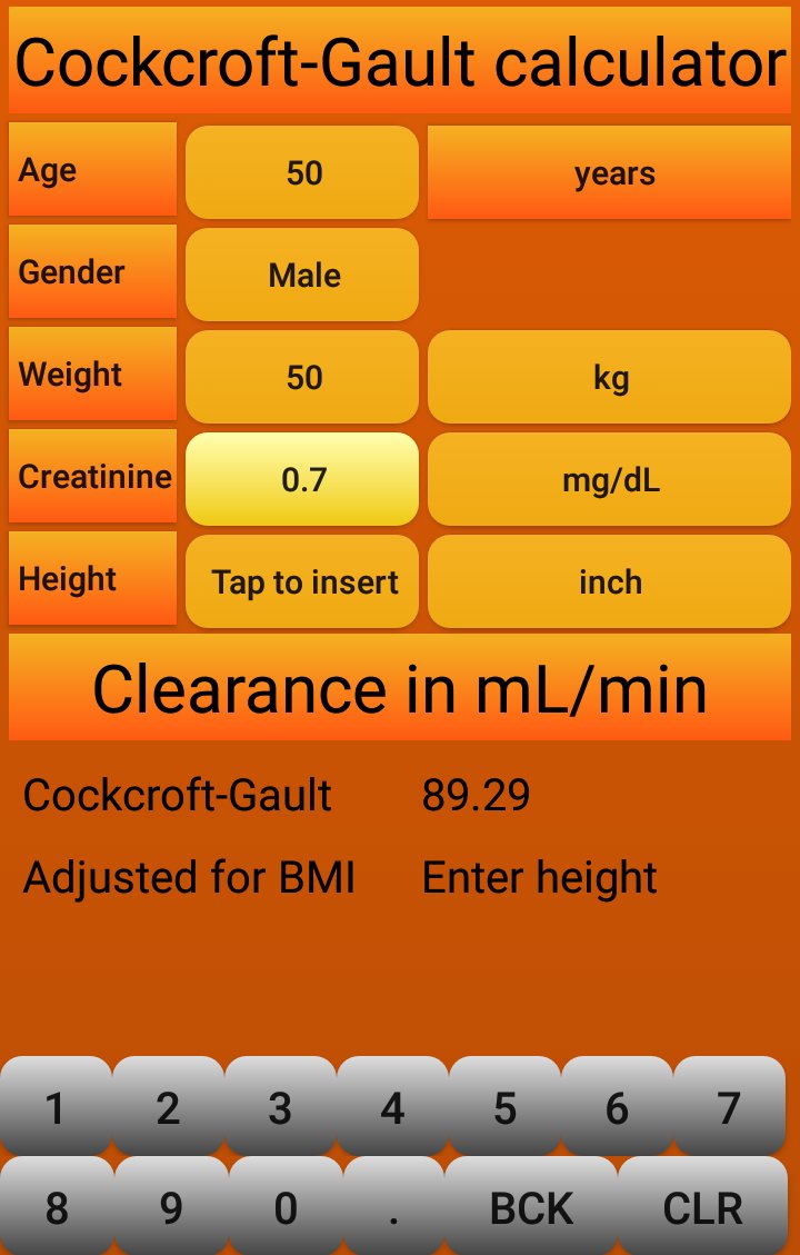 Cockcroft-Gault calculator ، القادم من المطور Gumption Multimedia ، يعمل على نظام Android في الماضي.