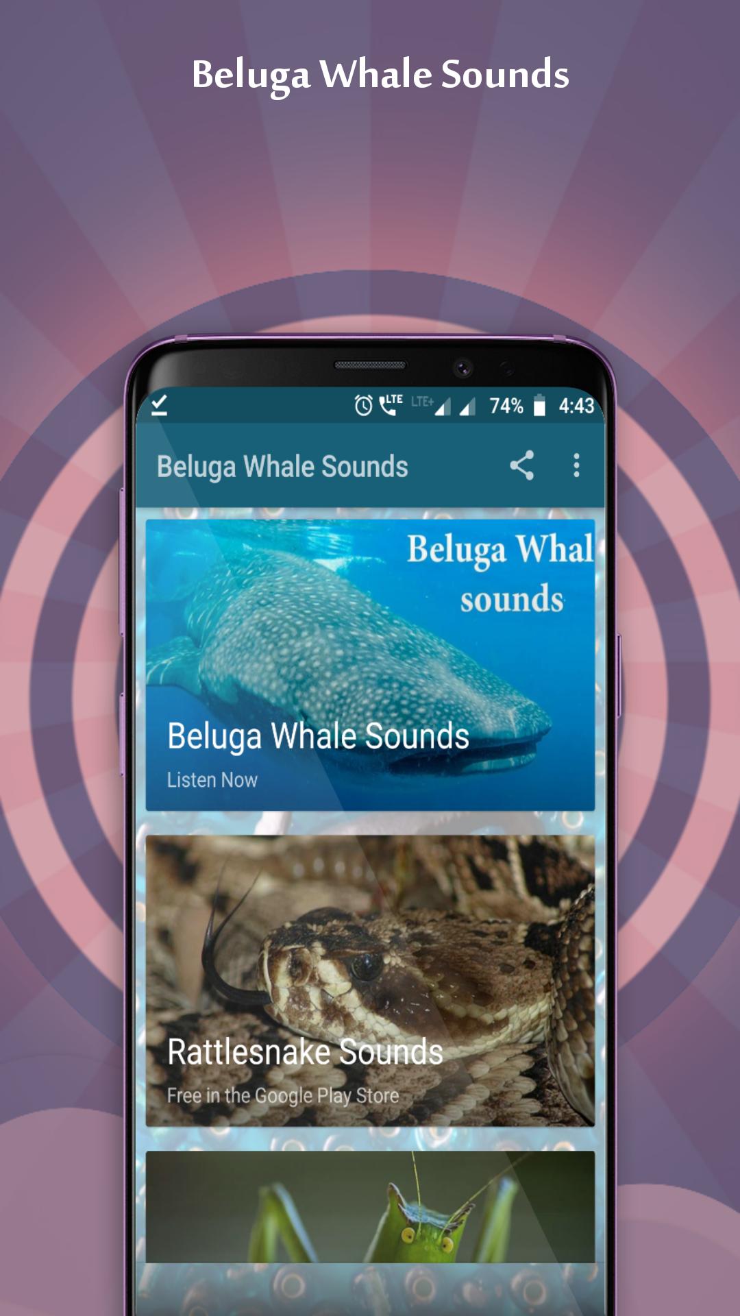This application provides the best collection of Beluga Whale Sounds for Android Devices. Sounds have been selected very carefully to be a good and fun user experience, we hope you will enjoy using the app and listening to Beluga Whale Sounds.