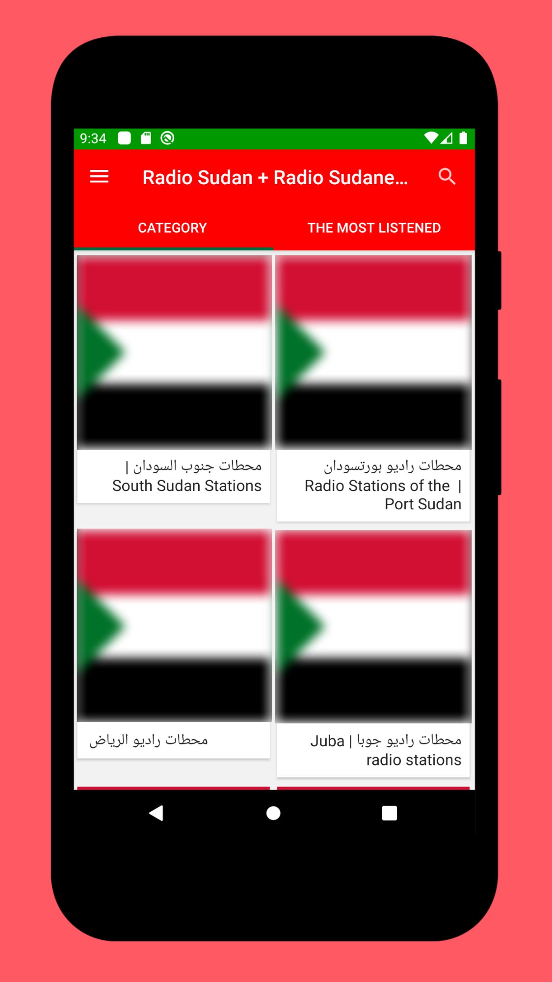 The Start screen and the interface of this application online radio stations of Sudan is elegant, and the most important thing is that it is very easy to use. As a user, you don't have to look for normal radio Frequencies. Just touch the name of your favorite Sudan radio and start listening Live.