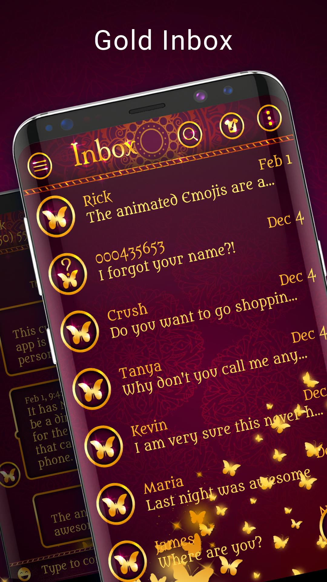 In addition to its beautiful design, the Red and Gold Butterfly Theme also features custom icons, wallpapers, and widgets that perfectly complement the theme. With its carefully crafted elements, your messaging app will look seamless and cohesive, making it easier to navigate and use.