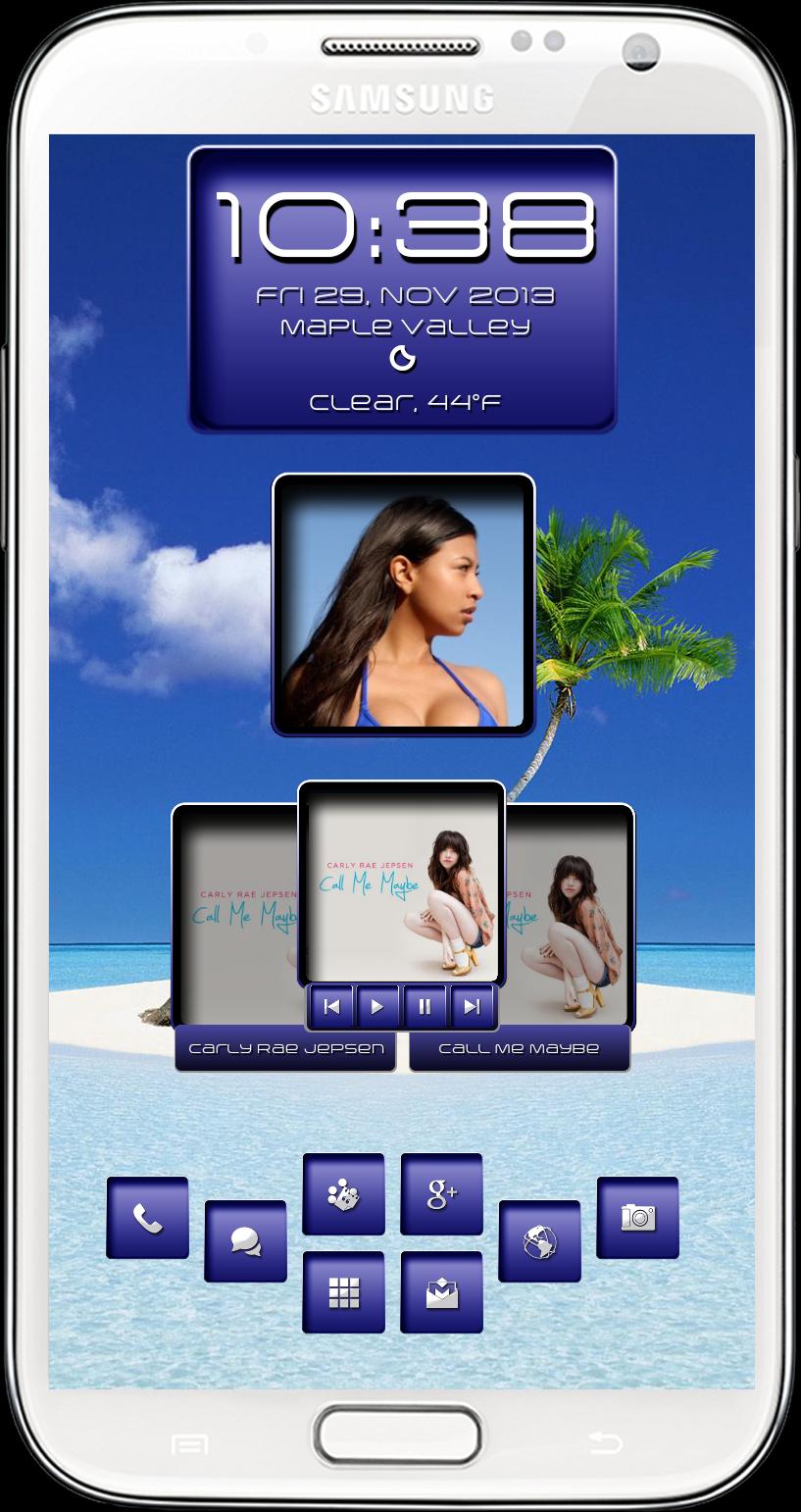 This is skin to be used with Zooper Widgets. This skin has four widget skins ( clock/date, picture frame, music and quick launch so use the widgets you want. Use your own personal pics for the picture frame widget by tapping the widget then choose layout/wallpaper/bitmap and to re-size your picture use "scale" then adjust position of your picture with "X Offset and "Y Offset"