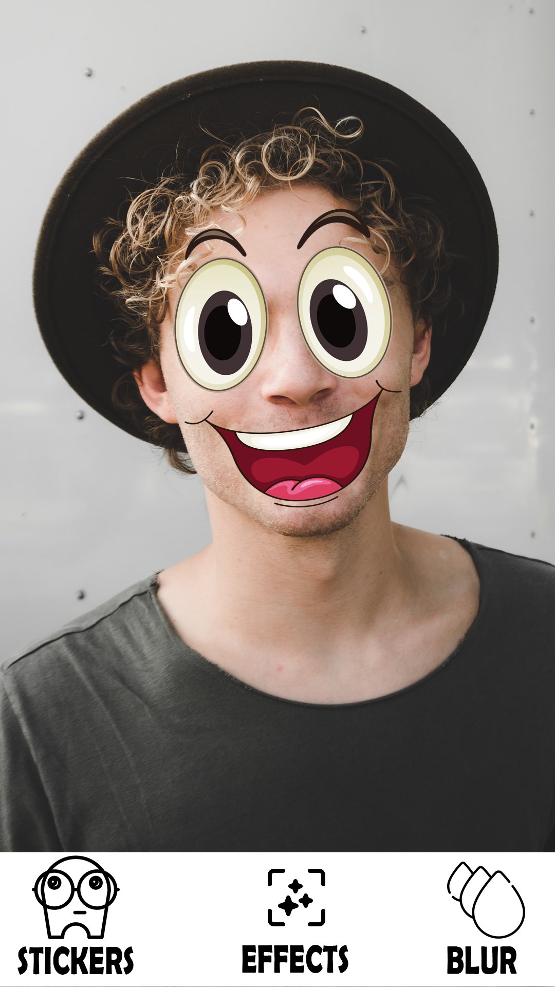Start your photo editing adventure and install one of the best funny photo apps. Open the big eyes app, upload a photo from your gallery or take a selfie and add crazy eyes! Use your fingers to resize stickers and make your eyes bigger.