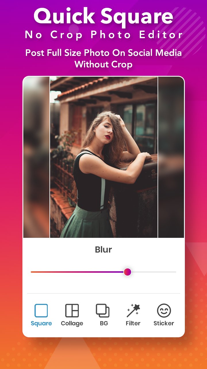 Photo Square - Insta Square Blur Image Background is an amazing photo editor that can create the beautiful and popular photo so easy. Photo Square is a great application to make your photo square blur without crop.