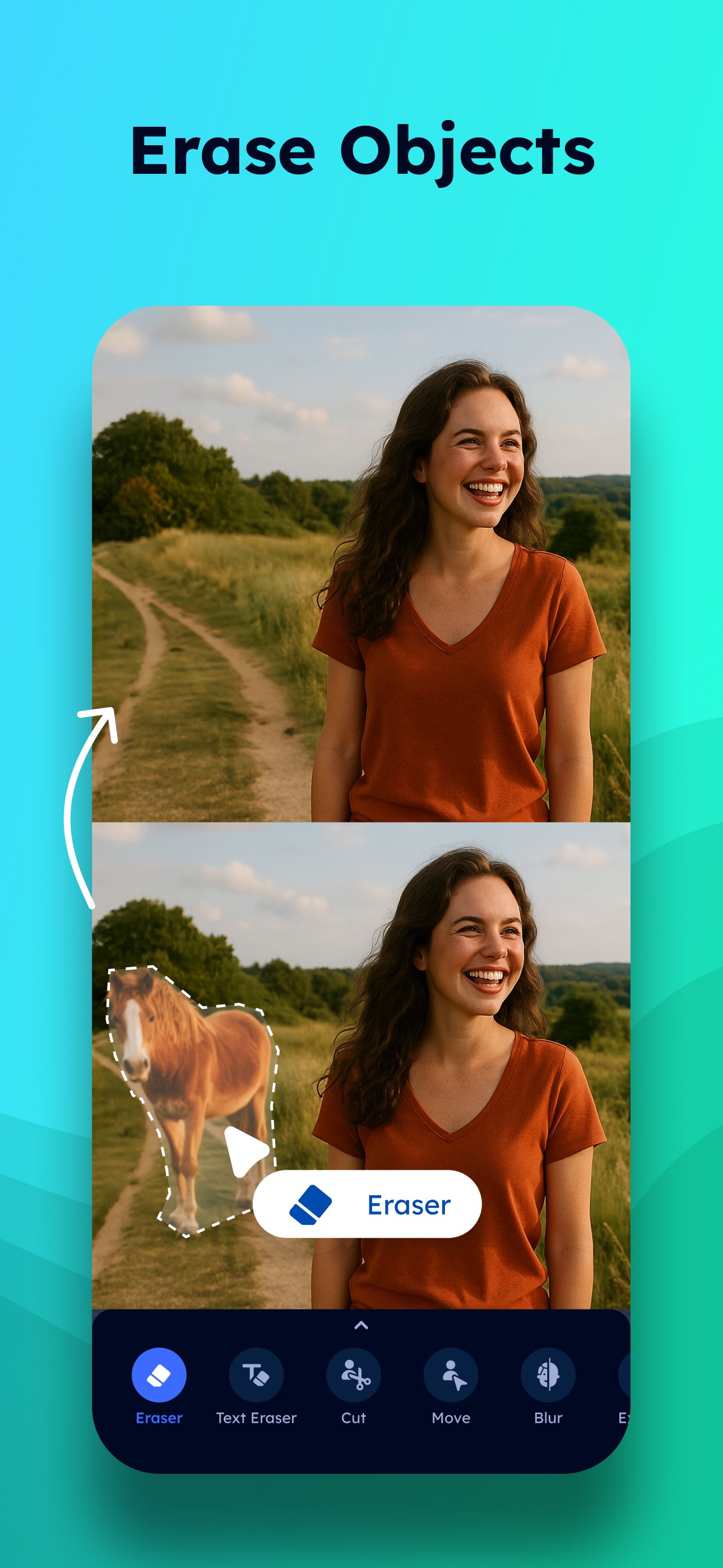 Erase unwanted objects with the magic eraser photo editor. The object eraser and object remover remove people, text, and blemishes. Use inpaint and inpainting to fill areas with magic removal precision. The people eraser, pimple eraser, and easy eraser handle quick fixes. The eraser object and eraser tool deliver professional photo eraser results. The text remover cleans up unwanted writing.
