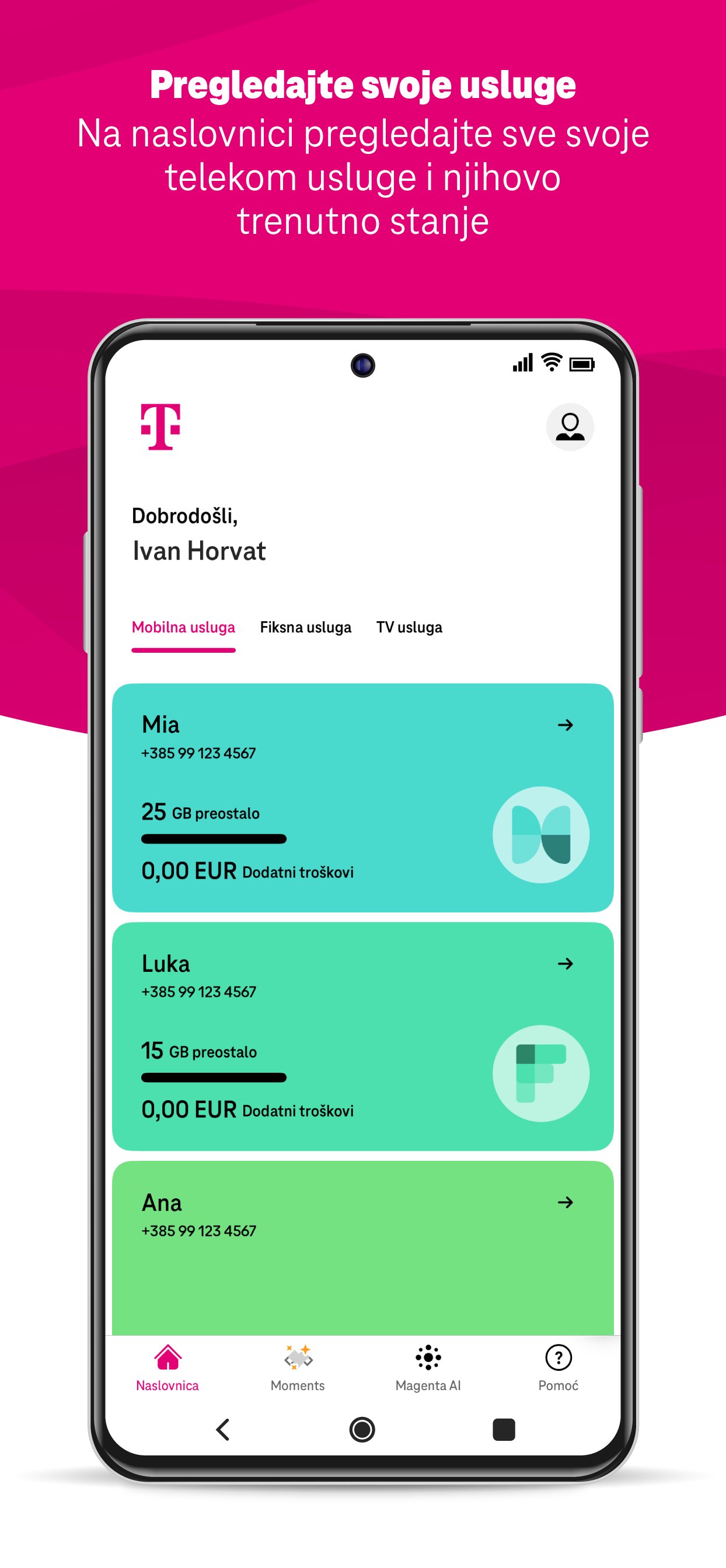 The Moj Telekom application contains all important information about consumption, services and accounts, the latest offers and exclusive benefits. Download it and easily pay monthly bills, vouchers and options, choose tariffs and devices and find experiences tailored to you - anytime and anywhere.