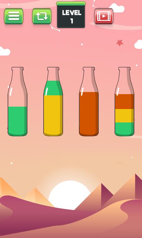 💧 Tap a bottle first, then tap another bottle, and pour water from the first bottle to the second one.