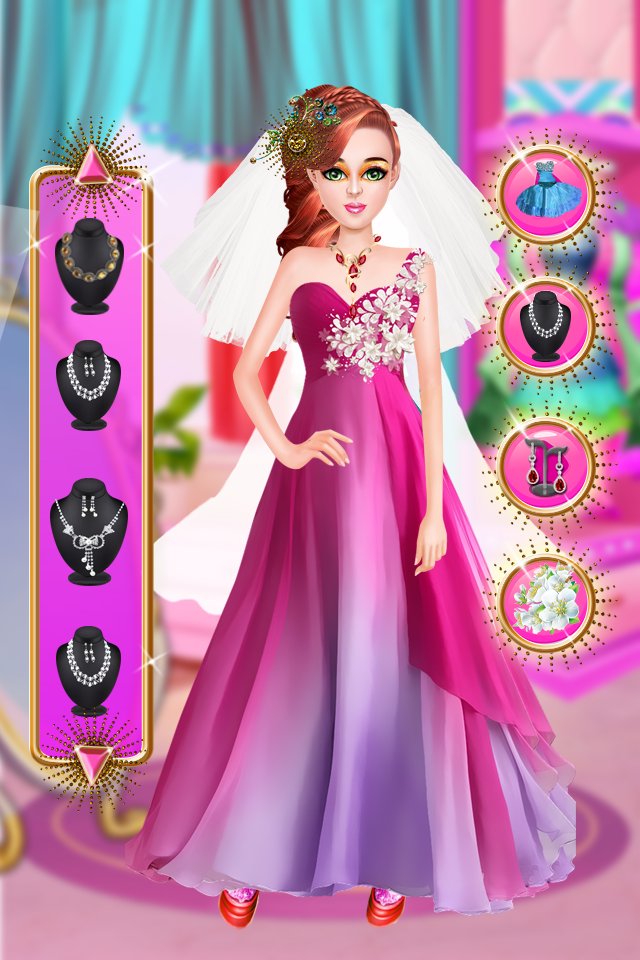 stylist girl always want her wedding dress looks perfect and stylish among all, she is little bit choosier about the dress, take her to mall and she will try the dress in mall for her wedding in girl games. Chic girls should help the bride in choosing the perfect shoes. Jewelry is no doubt the thing which bride look most chic and stylish so be very careful while choosing this in wedding games for girls. Makeover games let you help to learn skills about makeup, and in this gameyou have to do perfect bridal makeover for her dream wedding. Chic girl in makeover games can select any color among multiple veriety for choosing eye shadows, lipsticks, eye brows, lashes and many more.