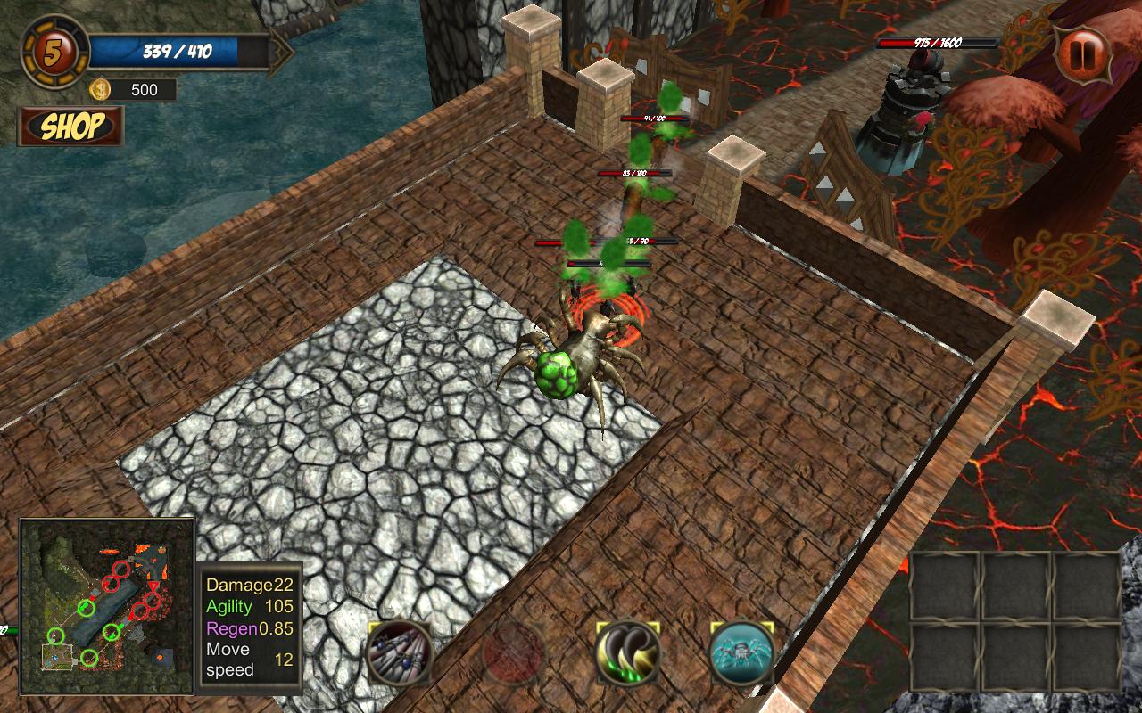 Hello, spider king. Your power is great. Deadly poison hits enemies. A tough web entangle enemies. Feet leaving the toxic traces. But you're a hero of the village. You use your strength to protect this place. While light of blue crystal is on - we are alive and not defeated. The forces of hell are killing our people, burn our forests, the earth groans under their steps. Save us, the hero. Defeat the horde.
